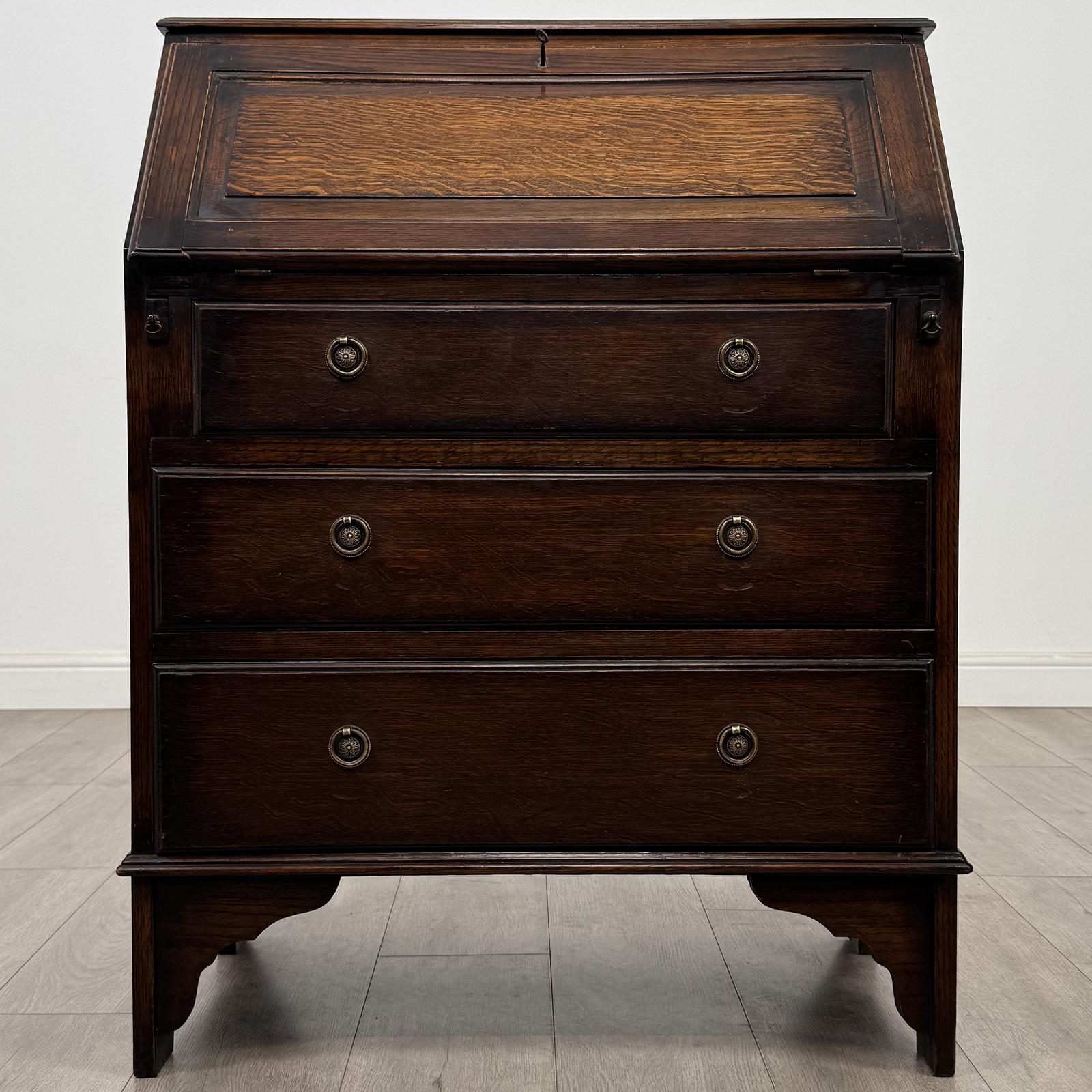 This Antique 20th Century Edwardian Bureau In Oak is located in Worcestershire, United Kingdom