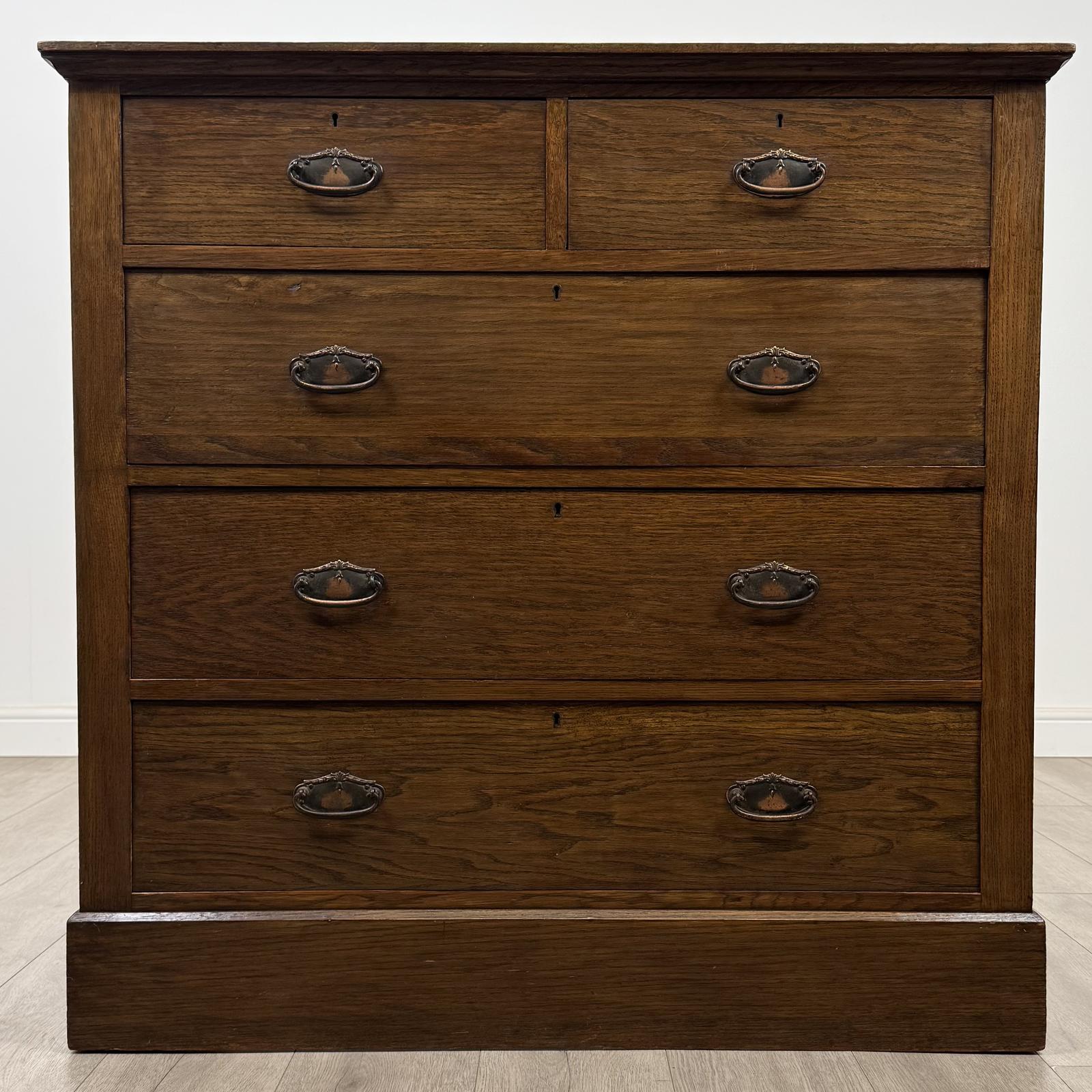This Antique 20th Century Edwardian Chest Of Drawers In Oak is located in Worcestershire, United Kingdom