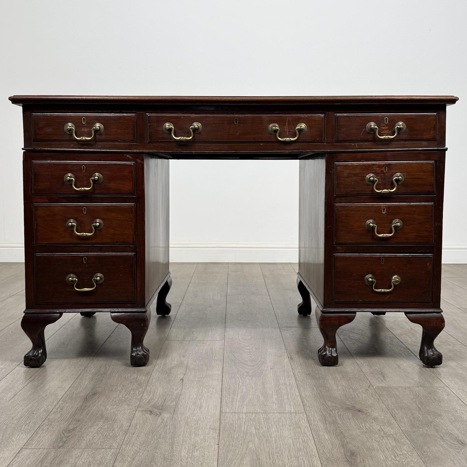 This Antique 20th Century Edwardian Pedestal Desk In Mahogany is located in Worcestershire, United Kingdom