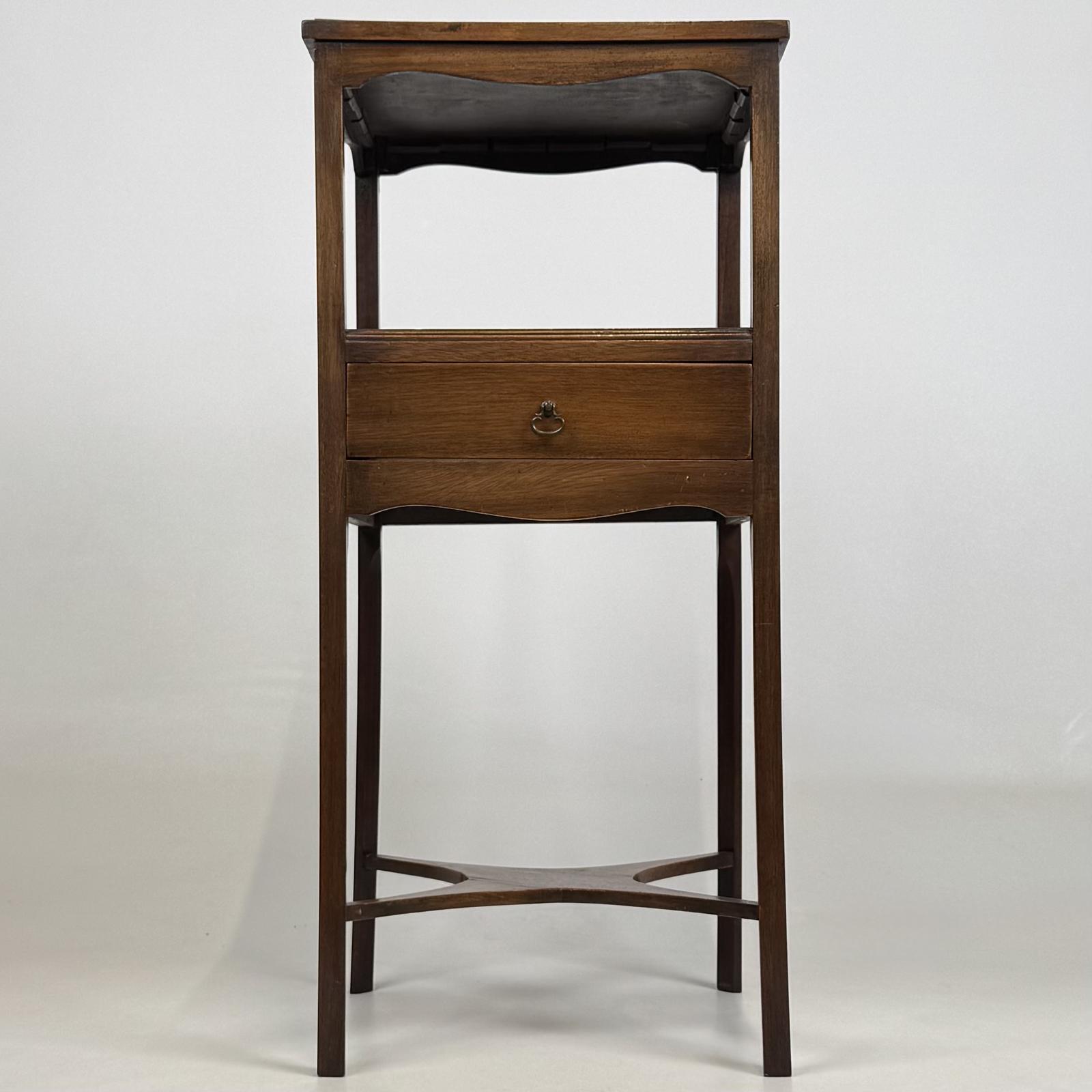 A charming antique early 20th century Edwardian mahogany side table, very well made and of good quality throughout. This elegant piece displays a gorgeous mahogany grain and rich warm colour, giving it timeless character and appeal. It stands on sturdy square legs and features a useful central drawer, ideal for small storage. A practical lower shelf adds further functionality while enhancing its classic proportions and design.