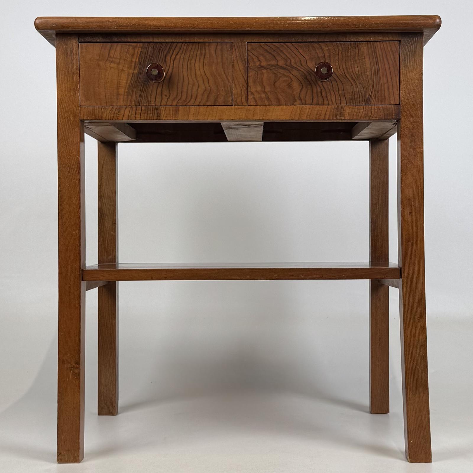 It features two useful drawers to the front, both fitted with their original knob handles, adding authenticity and practical storage.