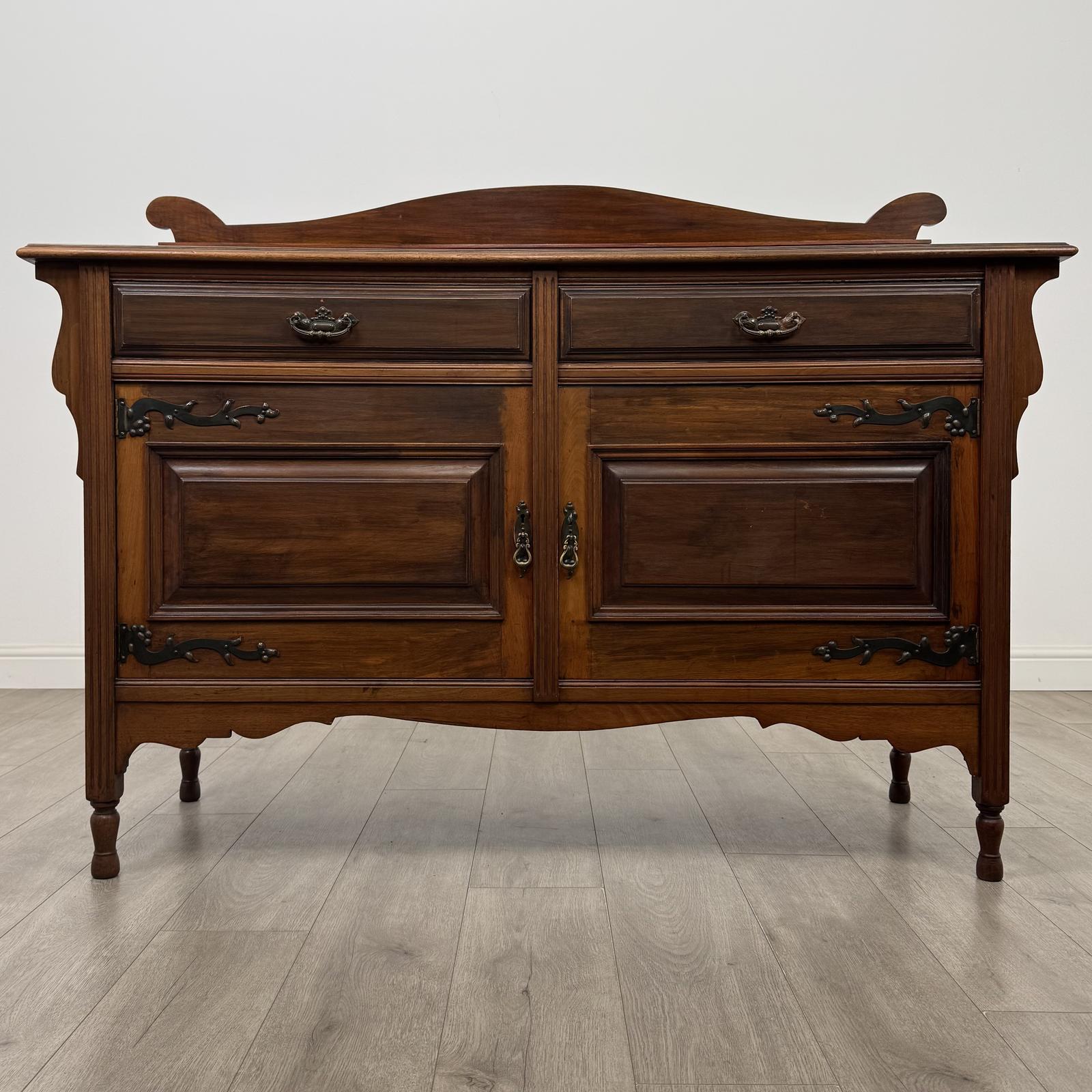 Antique 20th century Edwardian sideboard in walnut, a very well-made piece of good quality, showcasing fine craftsmanship and elegant design.