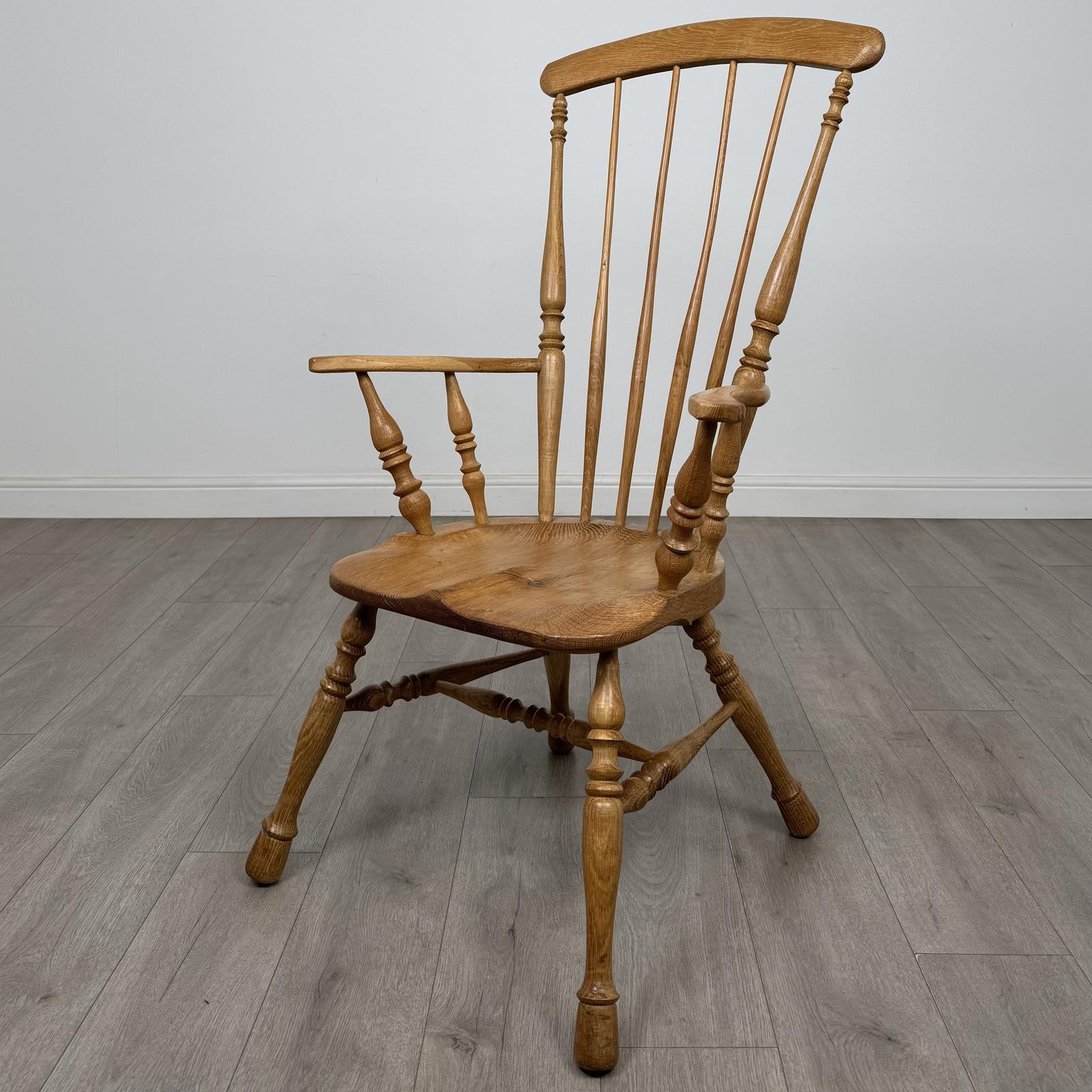 Antique 20th century farmhouse Windsor armchair in oak, a very well-made piece of the finest quality, showcasing exceptional craftsmanship and traditional design.