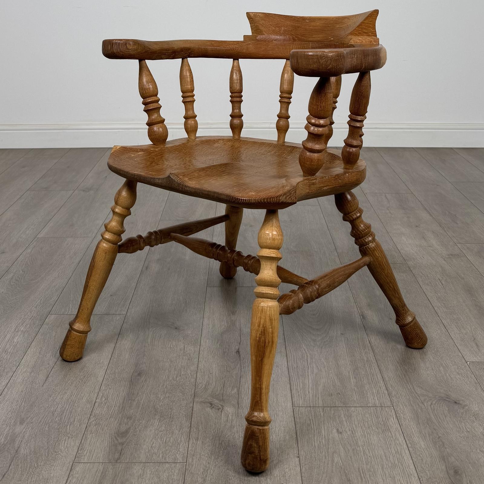 This Antique 20th Century Fine Captains Chair / Smokers Bow Chair In Oak is located in Worcestershire, United Kingdom