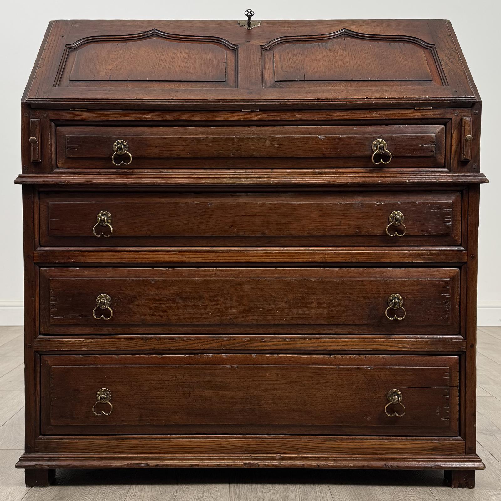 An antique 20th century oak bureau of fine quality and excellent craftsmanship.