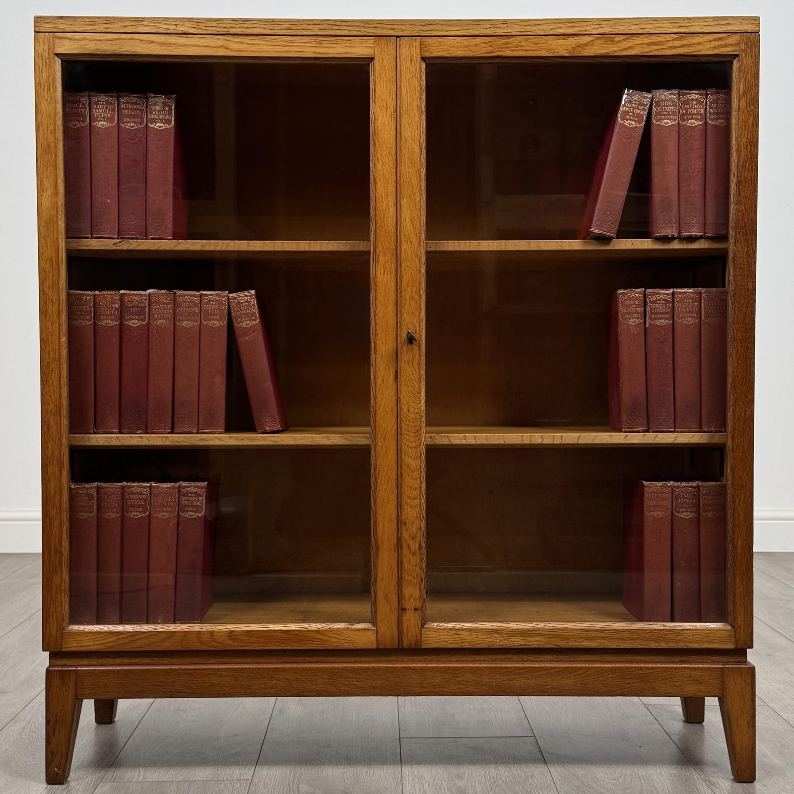 Antique 20th Century fine quality display cabinet in oak, beautifully crafted and showcasing excellent workmanship throughout. The cabinet features a glazed front, allowing for elegant display, with two adjustable shelves inside offering practical and versatile storage. Stood on tapered legs, the piece has a light and refined appearance, complemented by its gorgeous golden oak colour and stunning natural grain. Very well made and of fine quality, it remains in great condition and presents as a very desirable example.