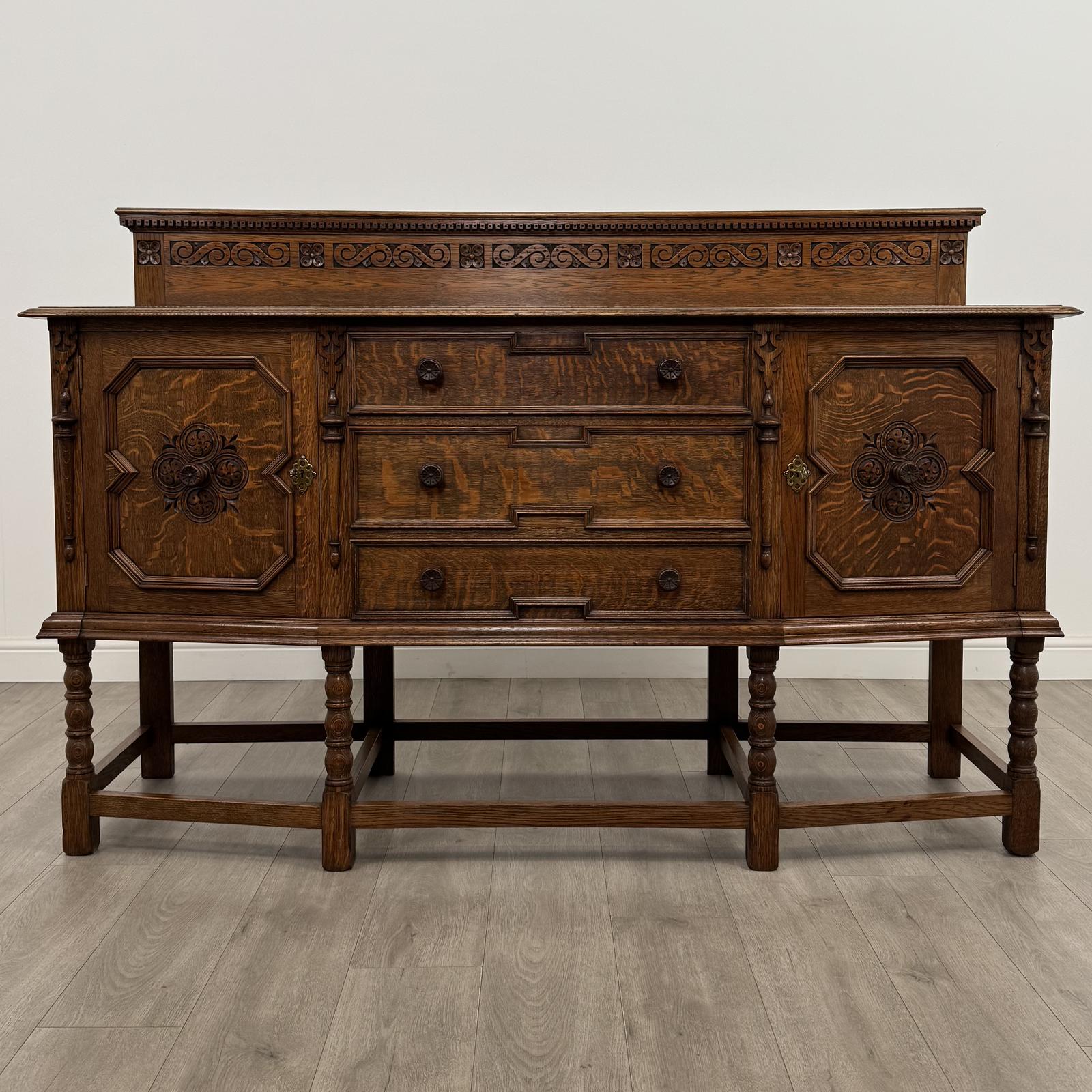 Antique 20th Century Fine Quality Jacobean Style Oak Sideboard
