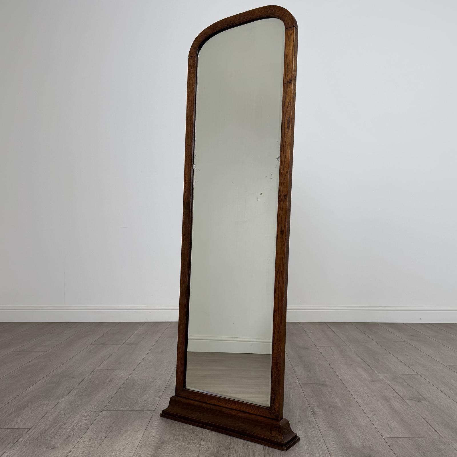 Antique 20th Century Floor Standing Dressing Mirror In Oak