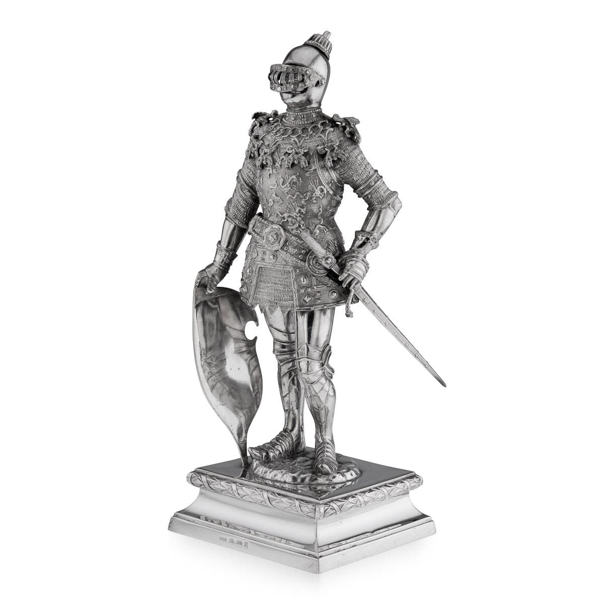 Antique 20th Century German Solid Silver Monumental Knight Figure c.1900