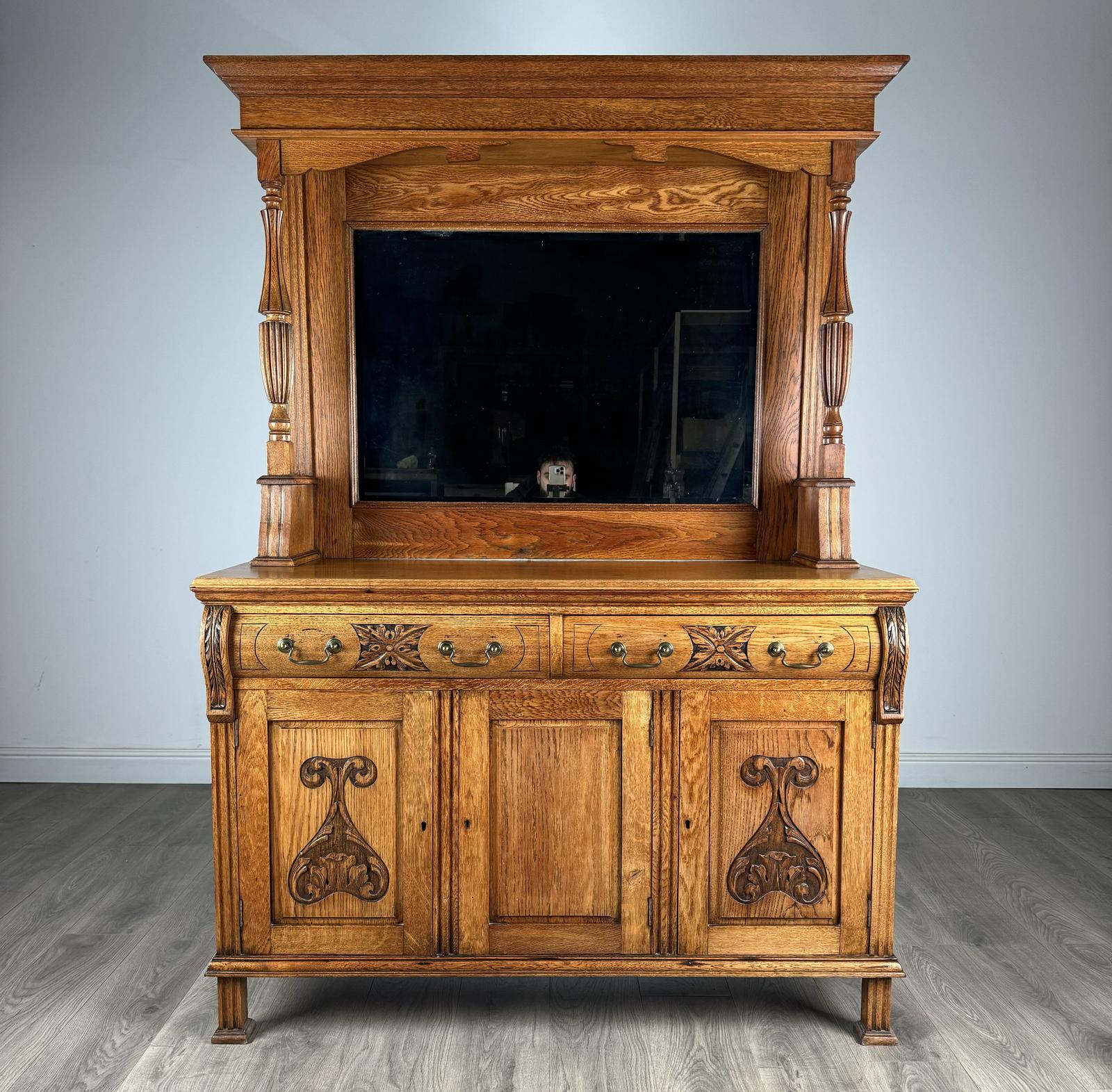 Antique 20th Century Golden Oak Mirror Back Sideboard