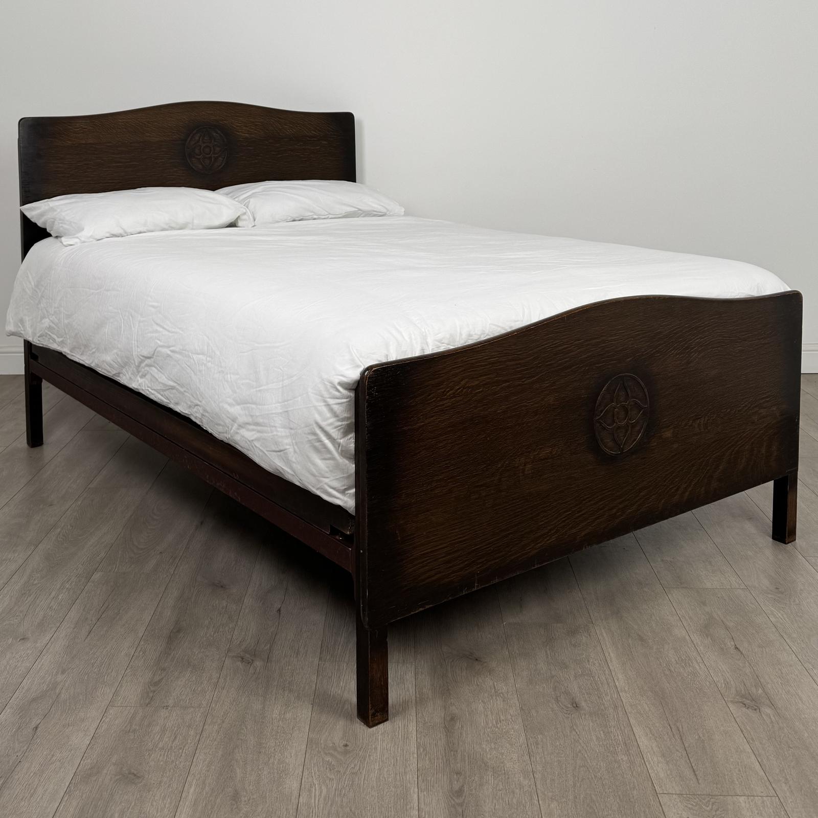 Antique 20th century good quality double bed in oak, a very well made and attractive piece showcasing traditional craftsmanship.