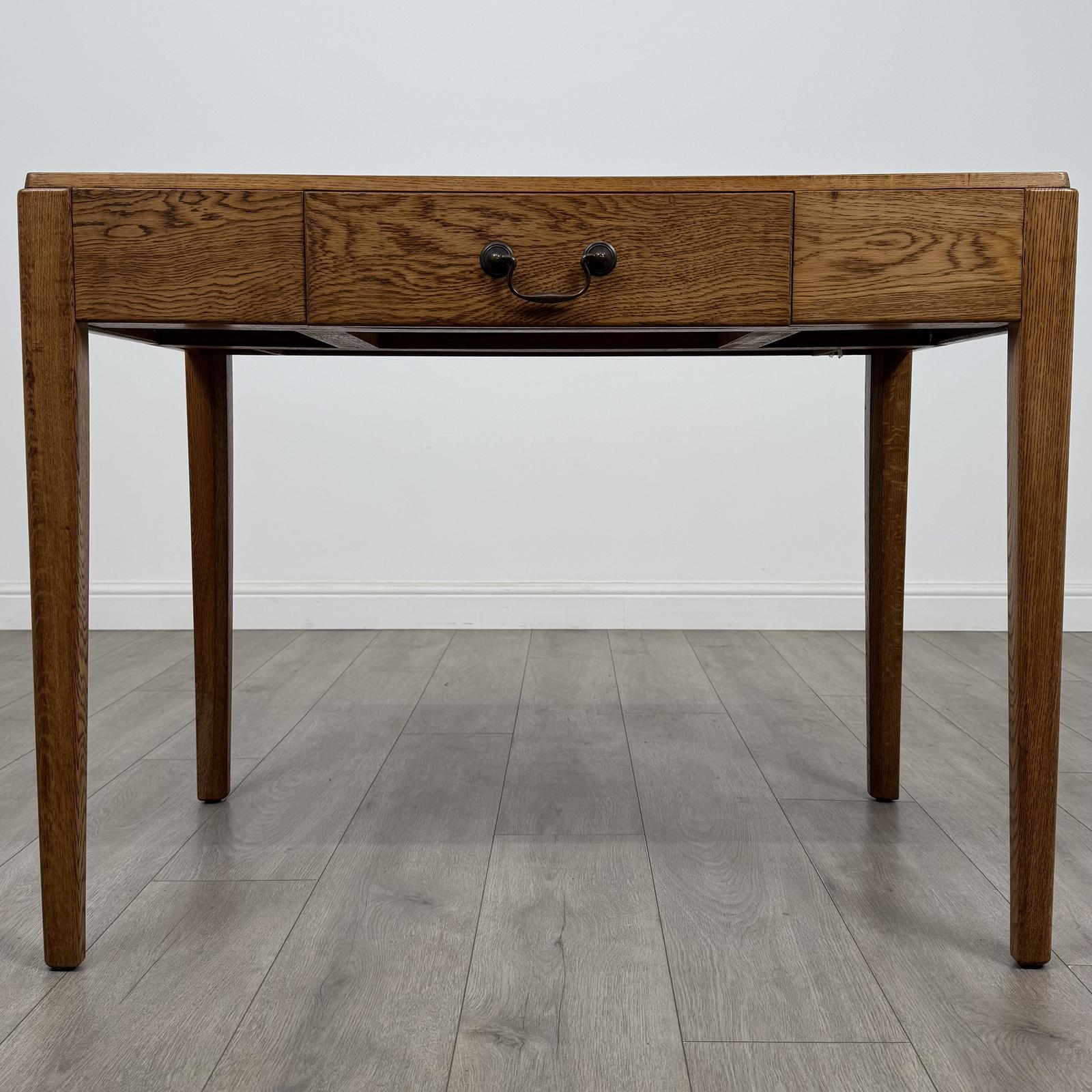 An antique 20th century golden oak writing table of good quality and excellent craftsmanship.
