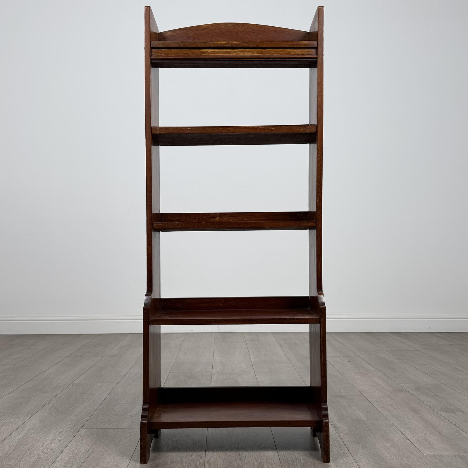 The bookcase features five shelves to the front, each finished with a small raised gallery, adding both character and practicality by helping to keep books and items neatly in place.