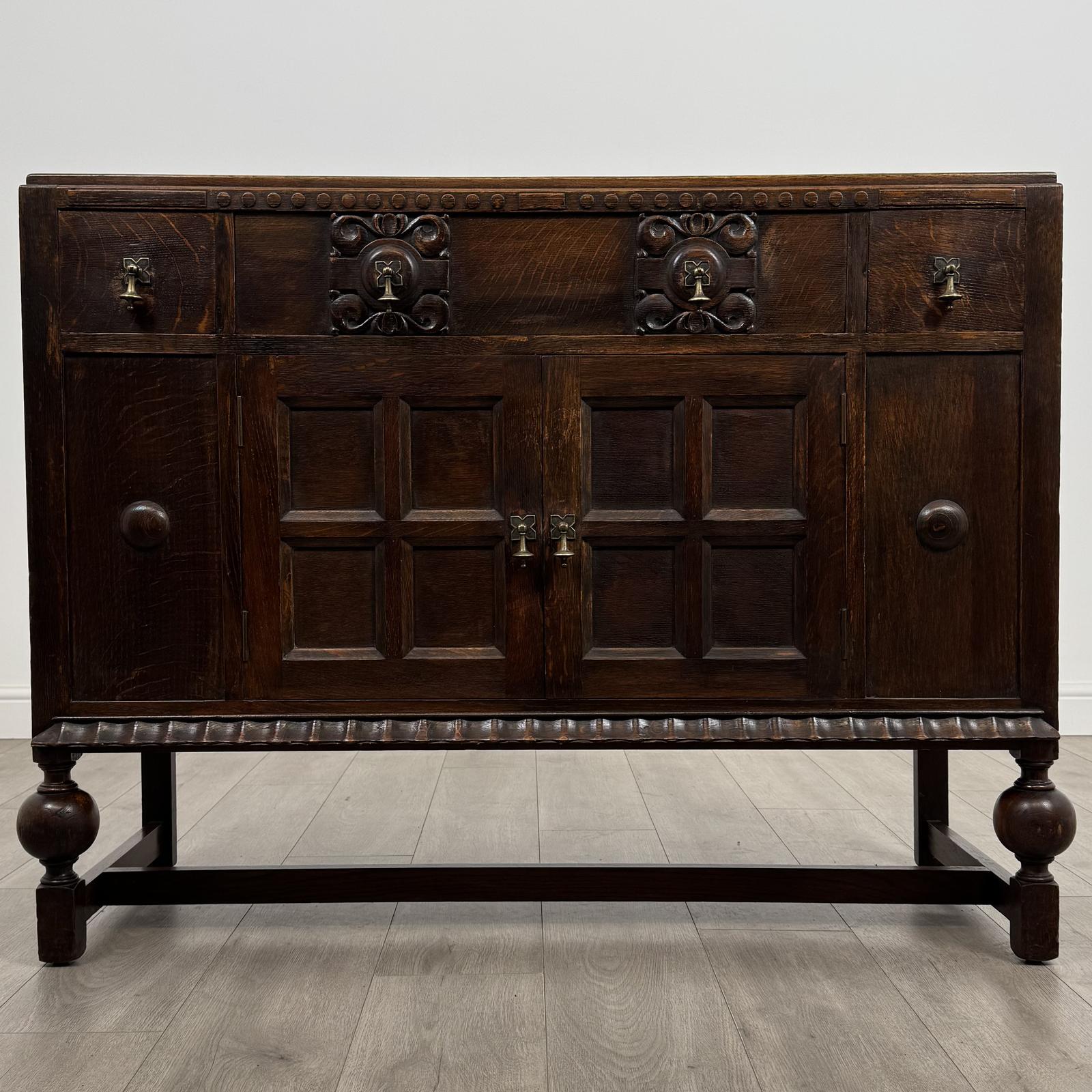 An antique 20th century oak sideboard of good quality and solid craftsmanship.