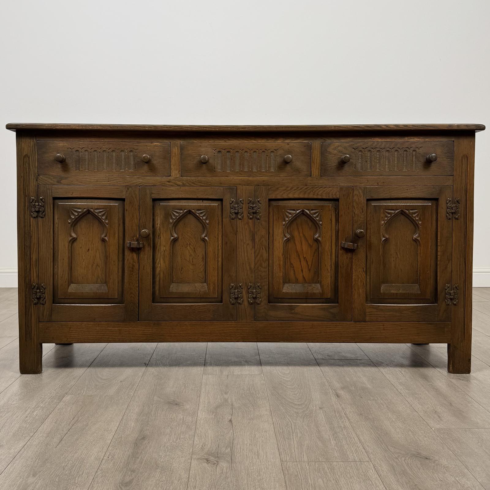 Antique 20th century oak sideboard, a very well-made piece of good quality, showcasing fine craftsmanship and elegant design.