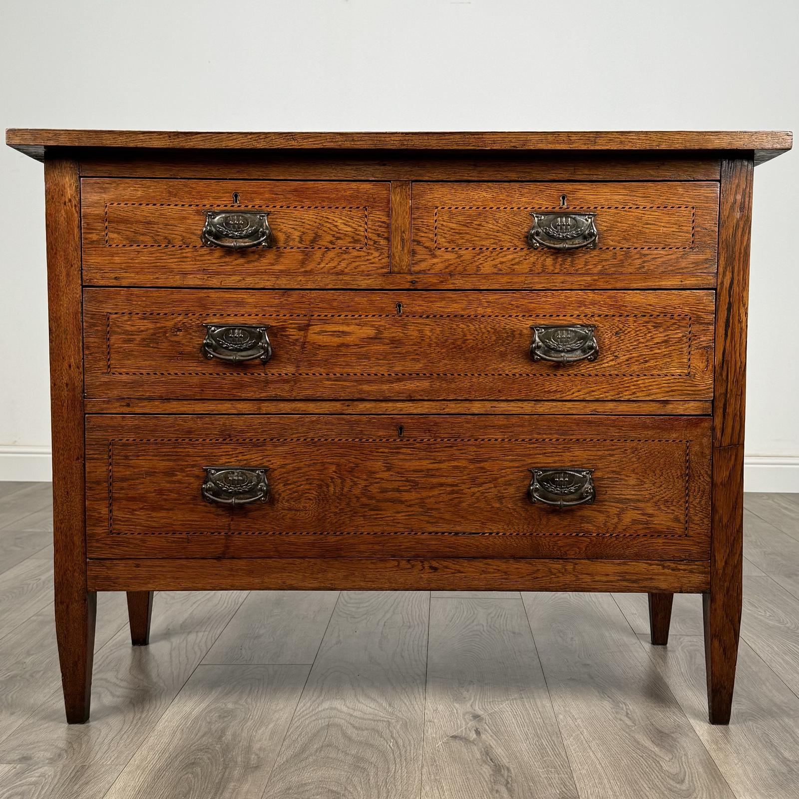 Antique 20th Century Inlaid Chest of Drawers in Oak