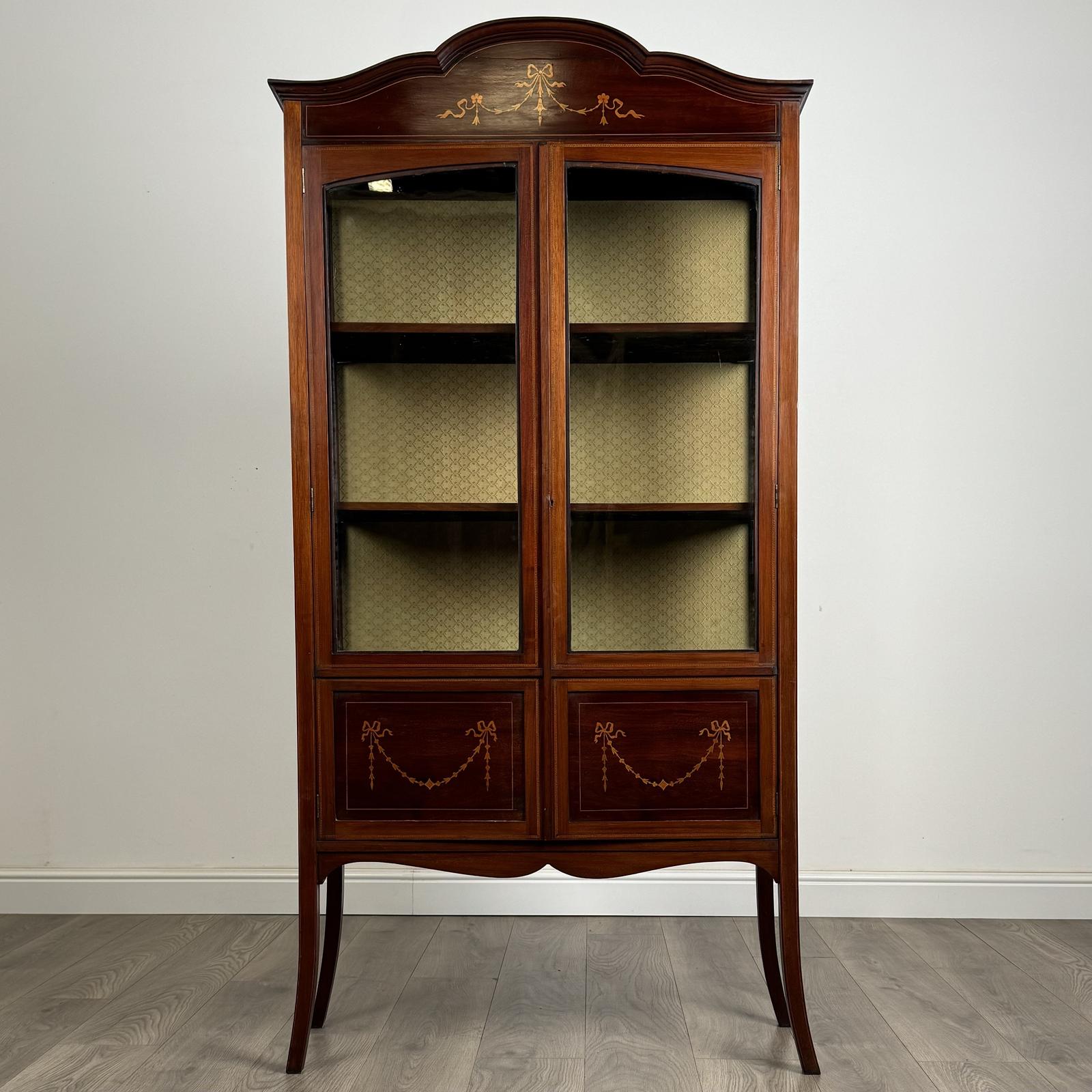 Antique 20th Century Inlaid Display Cabinet in Mahogany