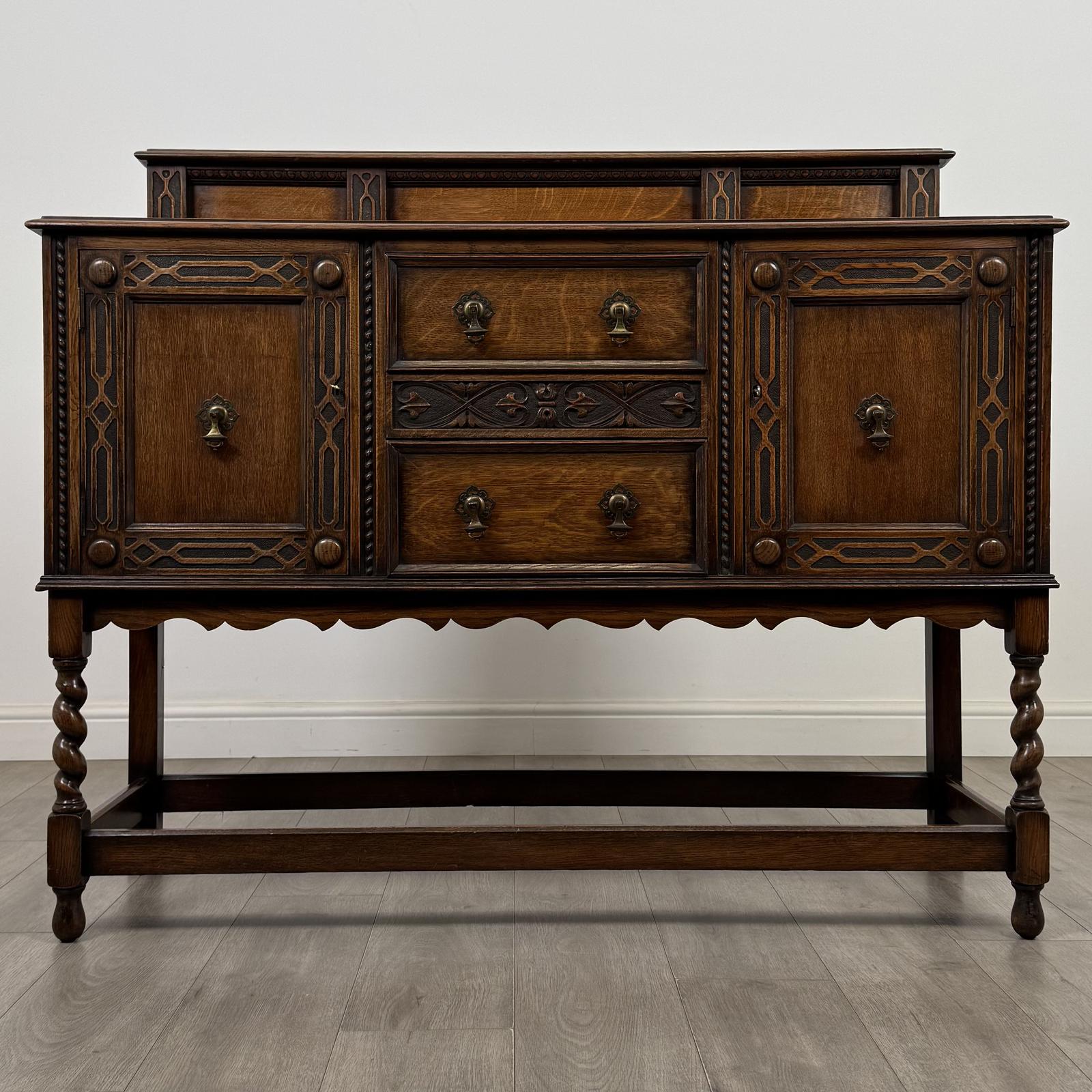 Antique 20th Century Jacobean Style Sideboard In Oak