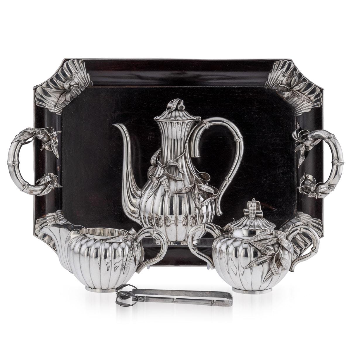 Antique 20th Century Japanese Solid Silver Coffee Set on Tray, Arthur & Bond c.1900