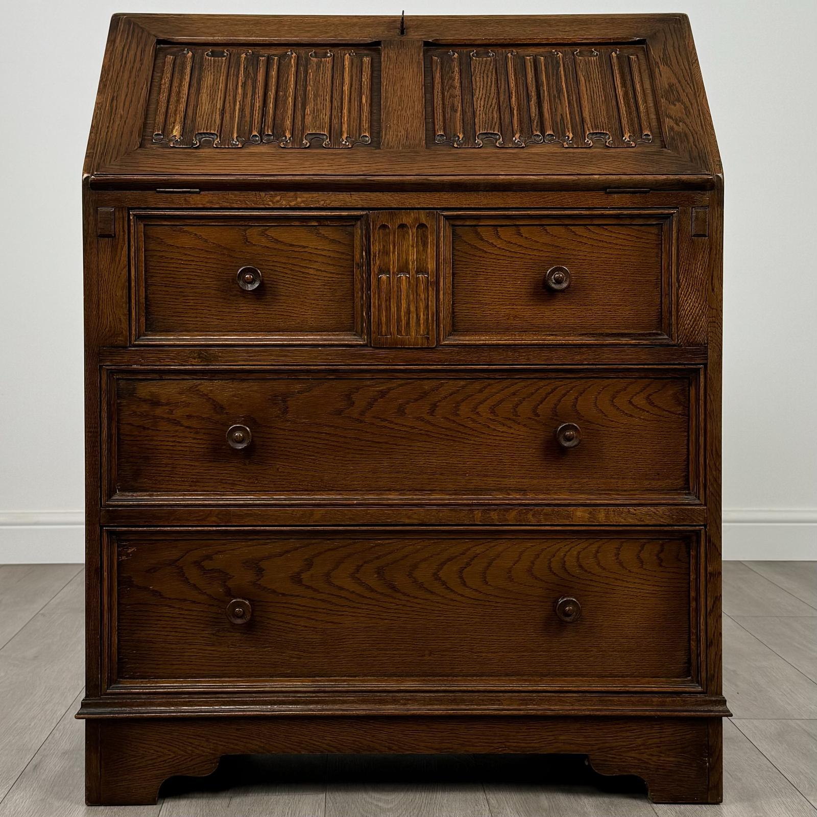 Antique 20th Century Linenfold Bureau In Oak (1 of 13)