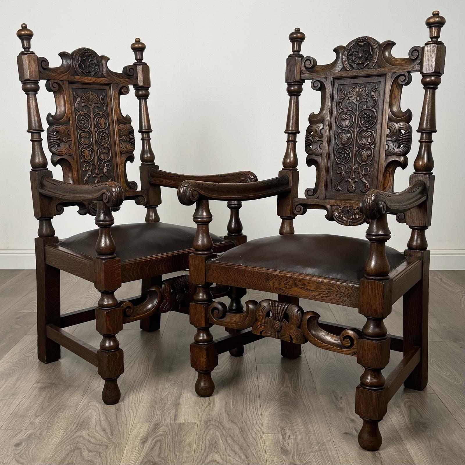 Antique 20th Century Pair of Fine Quality Armchairs in Oak