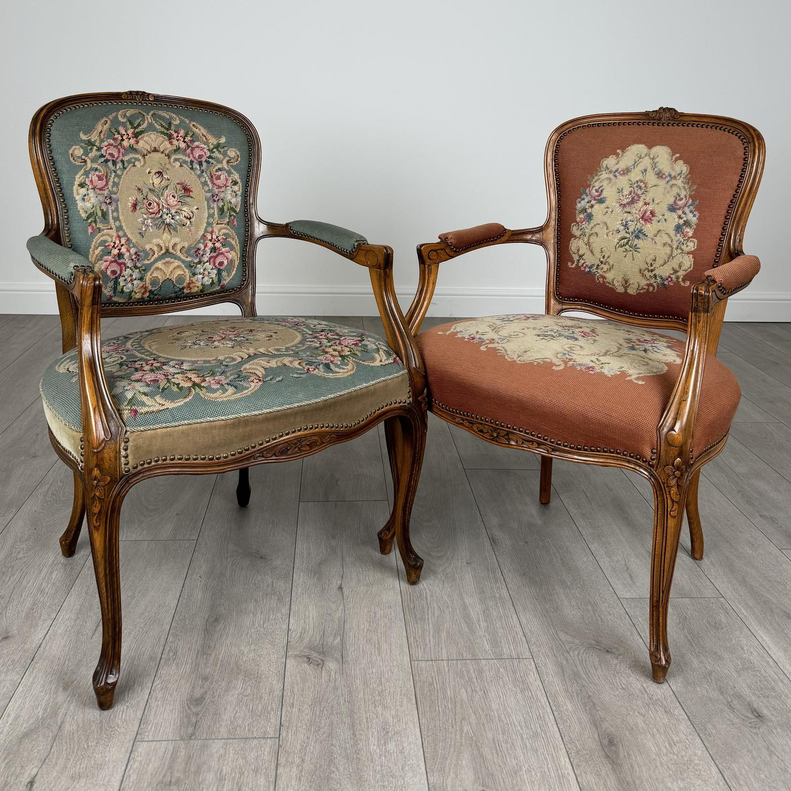 Antique 20th Century Pair Of French Open Armchairs In Oak