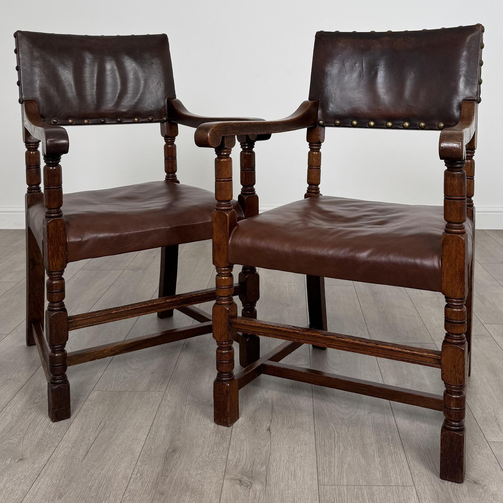 Antique 20th Century Pair of Good Quality Armchairs in Oak