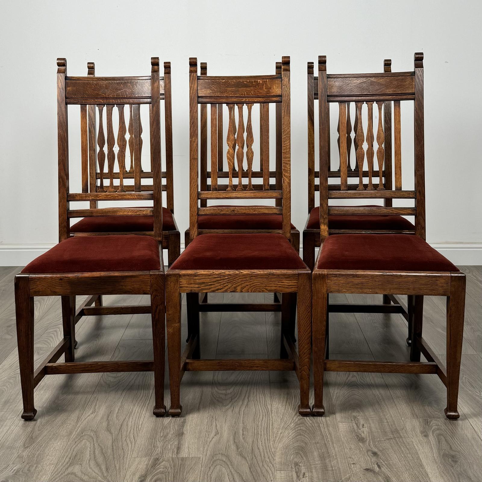Antique 20th Century Set Of 6 High Back Dining Chair’s In Oak