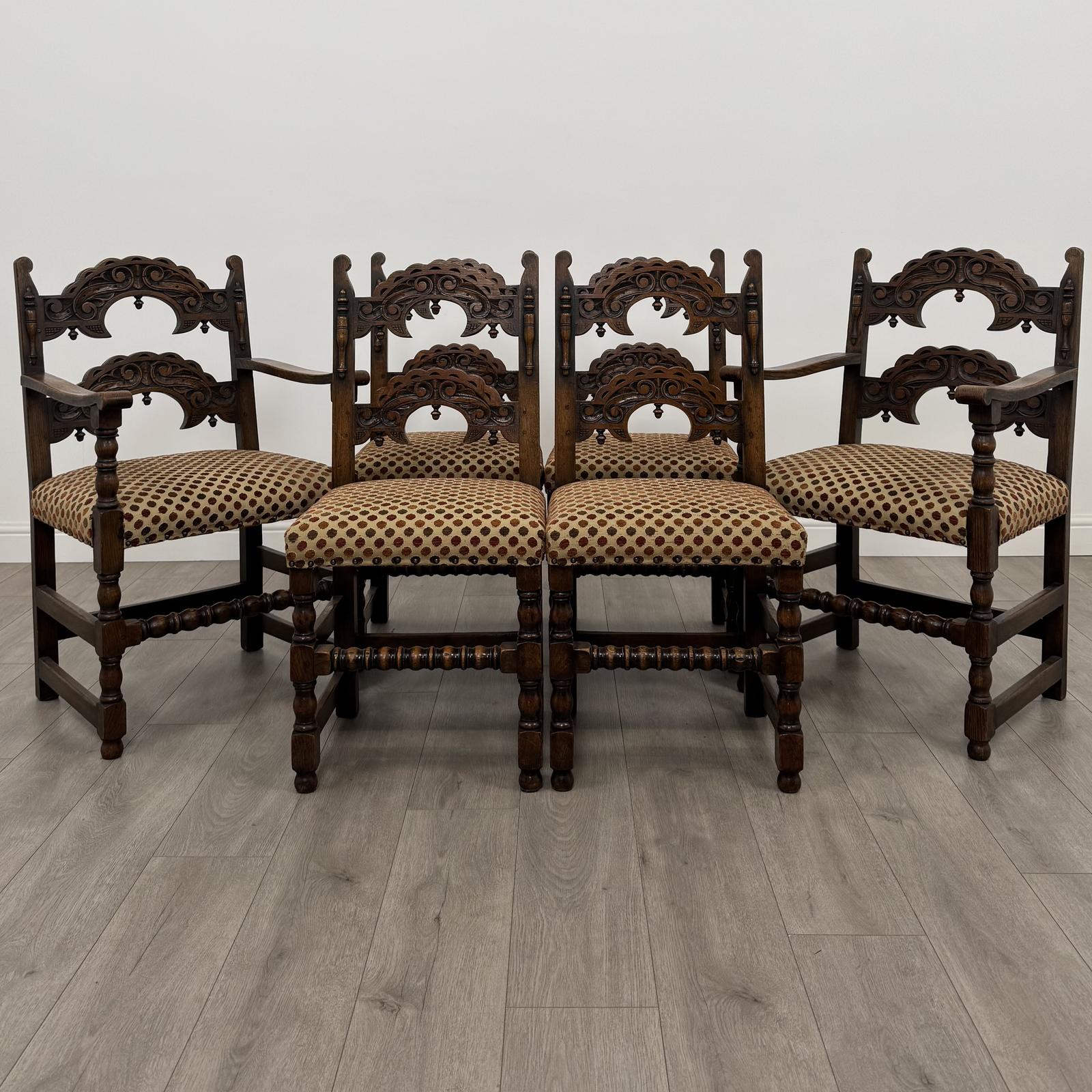 Antique 20th Century Set Of 6 Jacobean Style Oak Dining Chairs