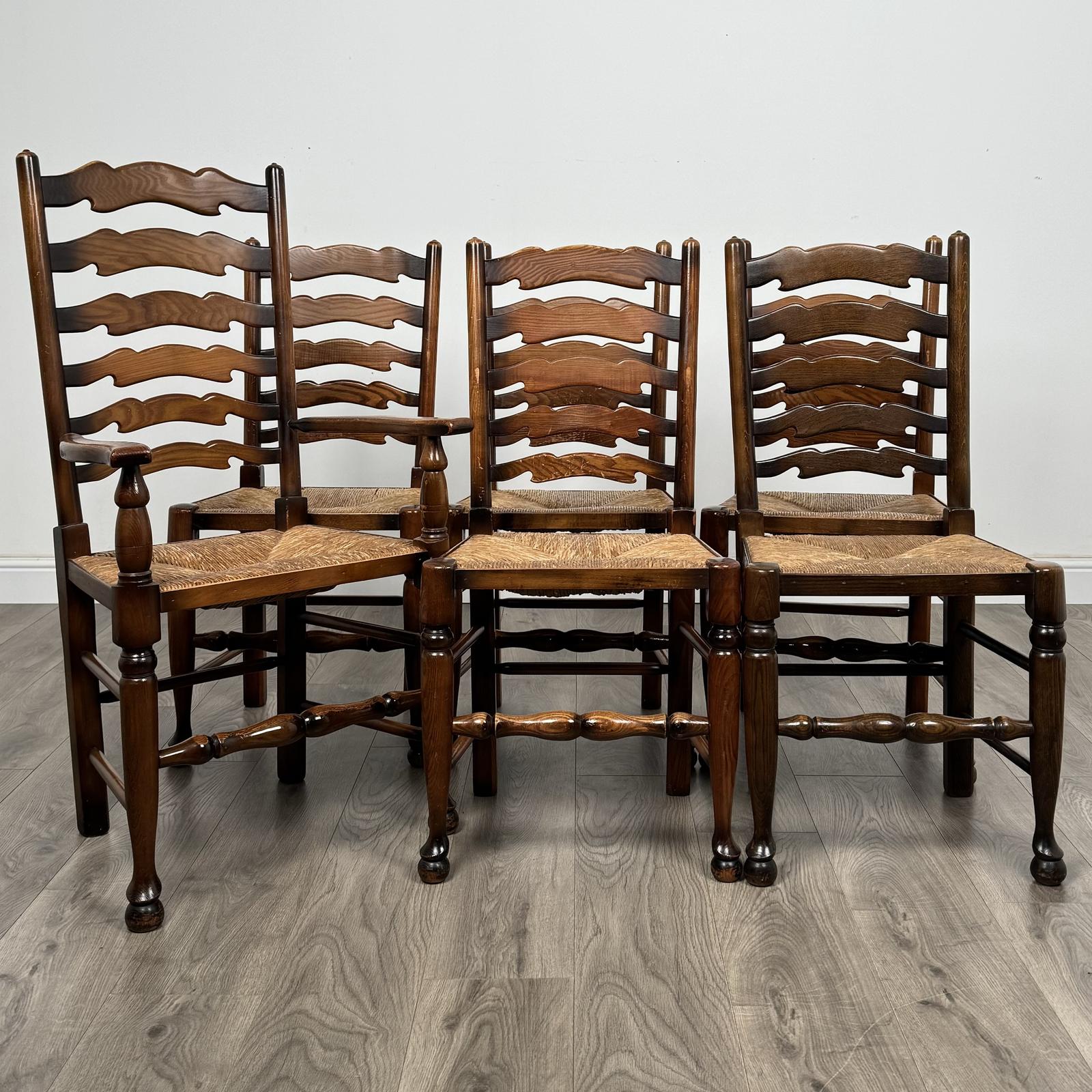Antique 20th Century Set Of 6 Ladder Back Dining Chairs In Oak
