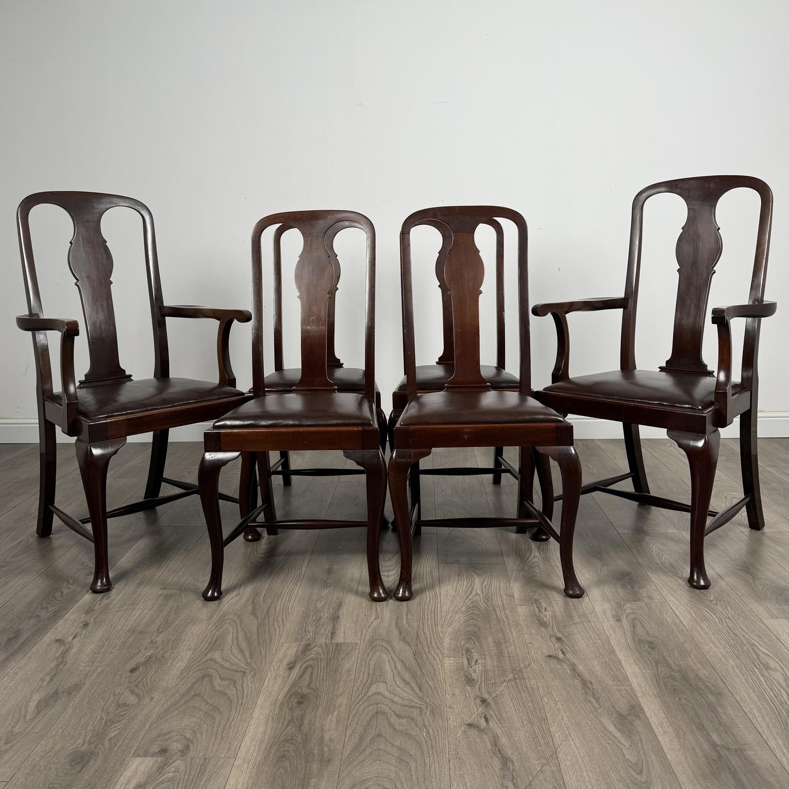 Antique 20th Century Set of 6 Queen Anne Style Dining Chairs