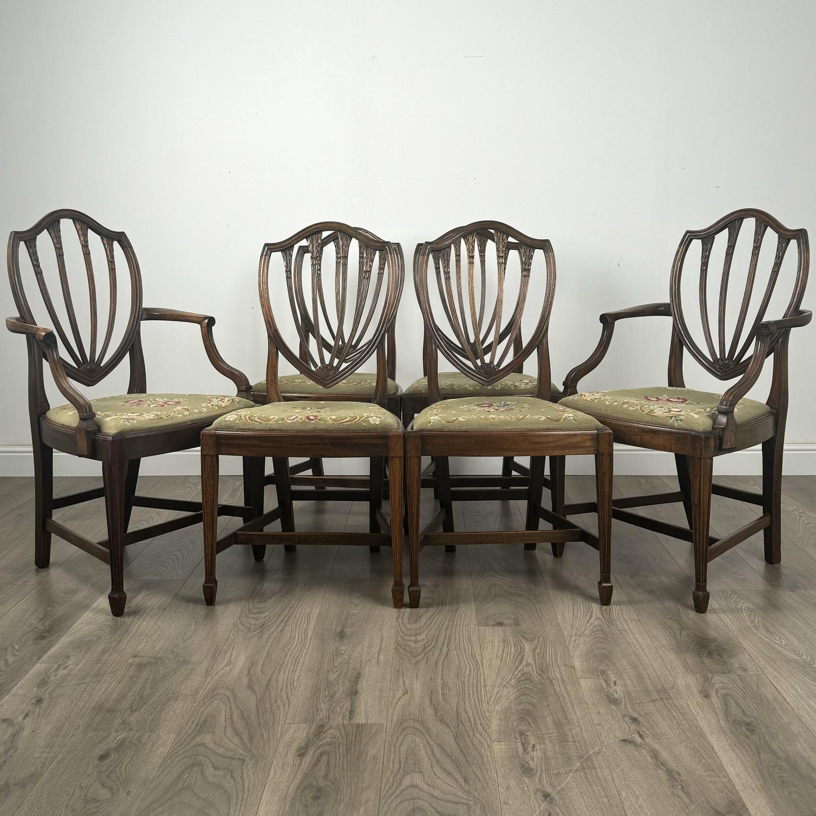 Antique 20th Century Set of 6 Shield Back Dining Chairs in Walnut