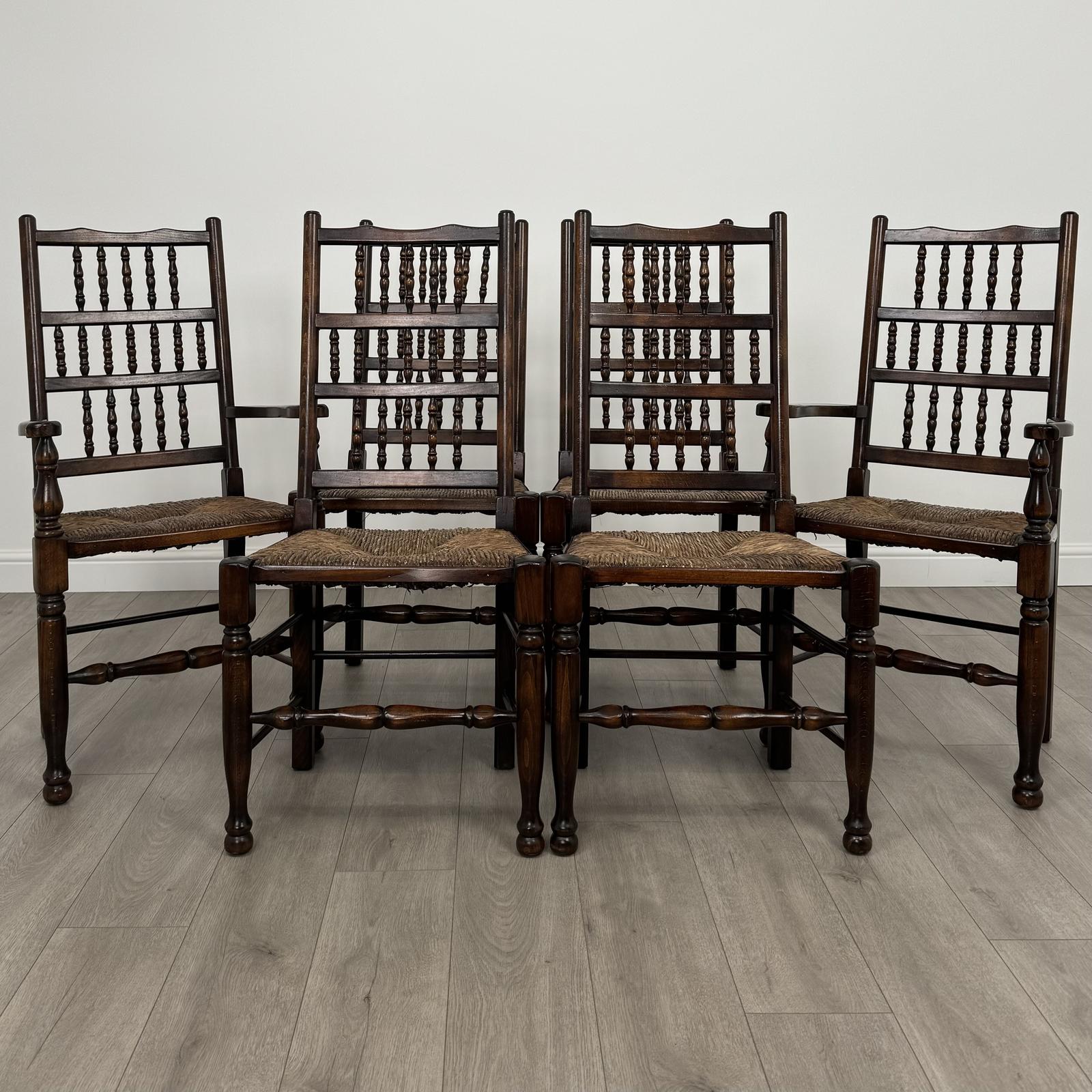 Antique 20th Century Set of 6 Spindle Back Dining Chairs in Oak