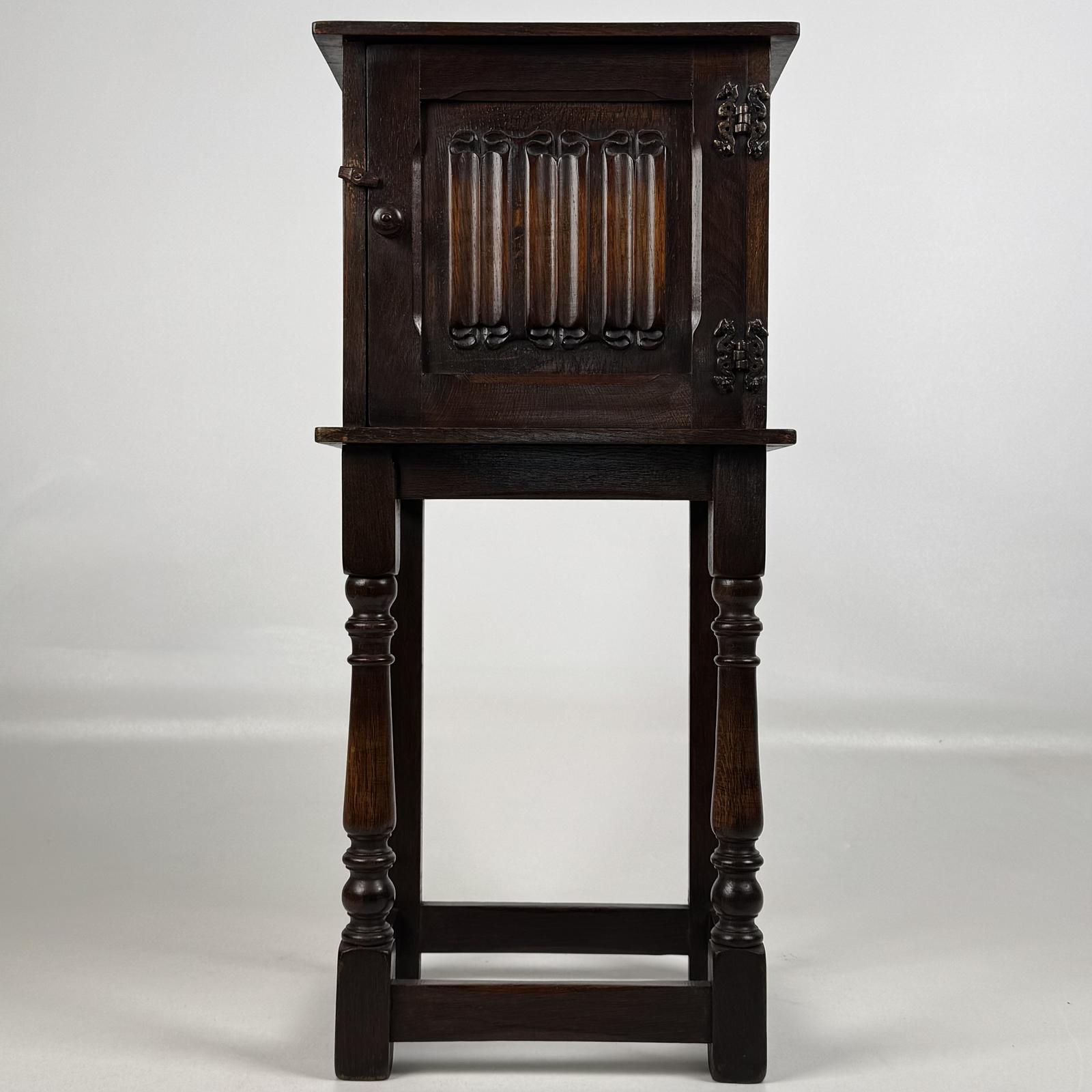 Antique 20th Century Small Carved Oak Cabinet