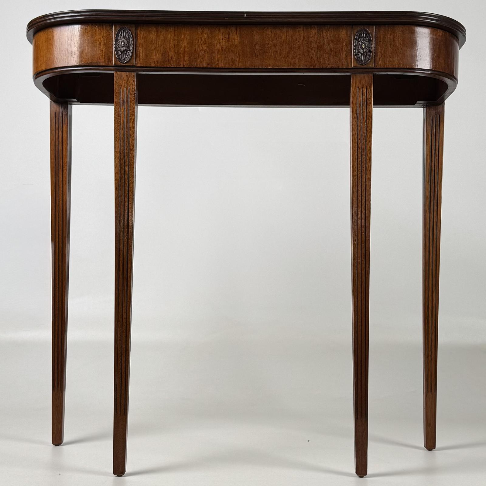 The mahogany displays beautiful figuring and rich grain and colour throughout, highlighting the quality of the timber. Well made and in good condition, this desirable example is a nice compact size, making it versatile for use in a variety of rooms.