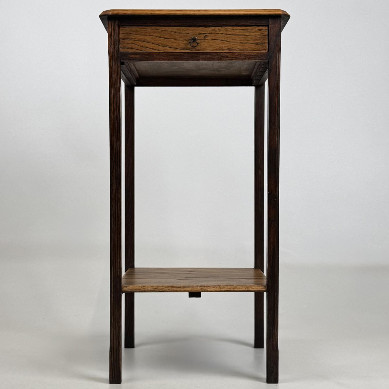 A charming antique 20th century small Edwardian side table in oak, very well made and of fine quality, displaying attractive craftsmanship throughout. The piece features a single drawer to the top, providing useful storage space for everyday items.