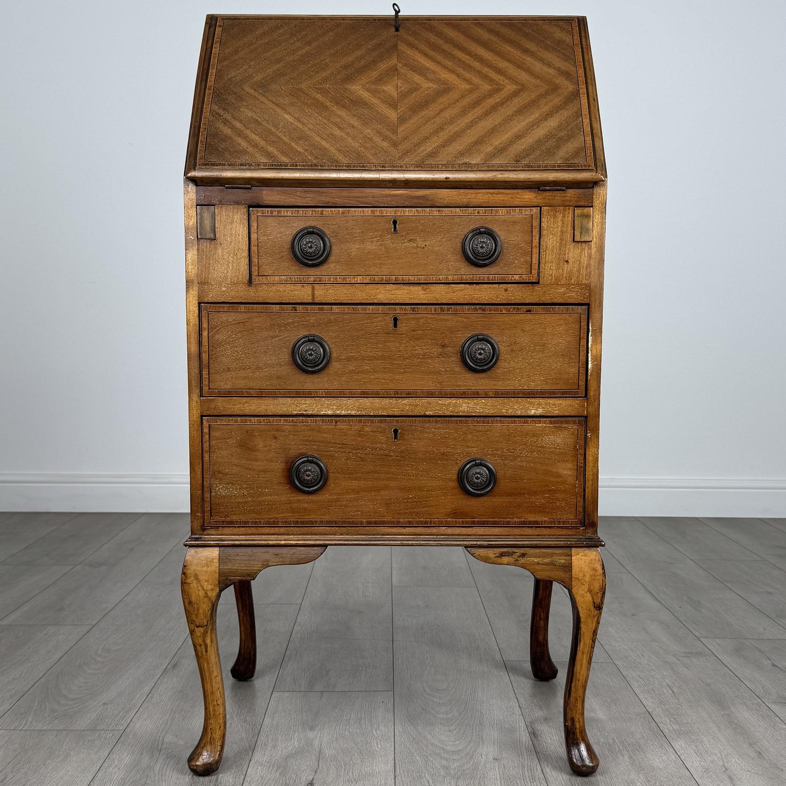 Antique 20th Century Small Inlaid Bureau in Mahogany