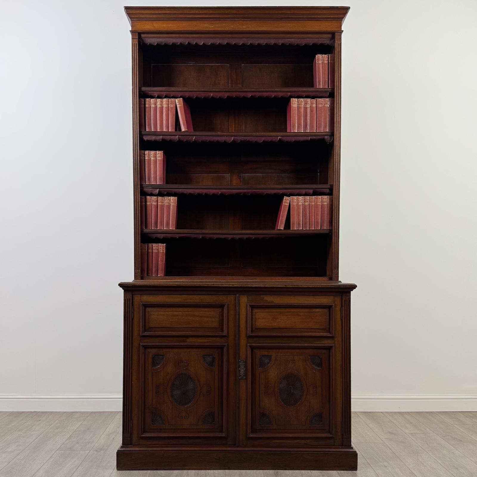 This Antique 20th Century Tall Open Bookcase In Mahogany is located in Worcestershire, United Kingdom