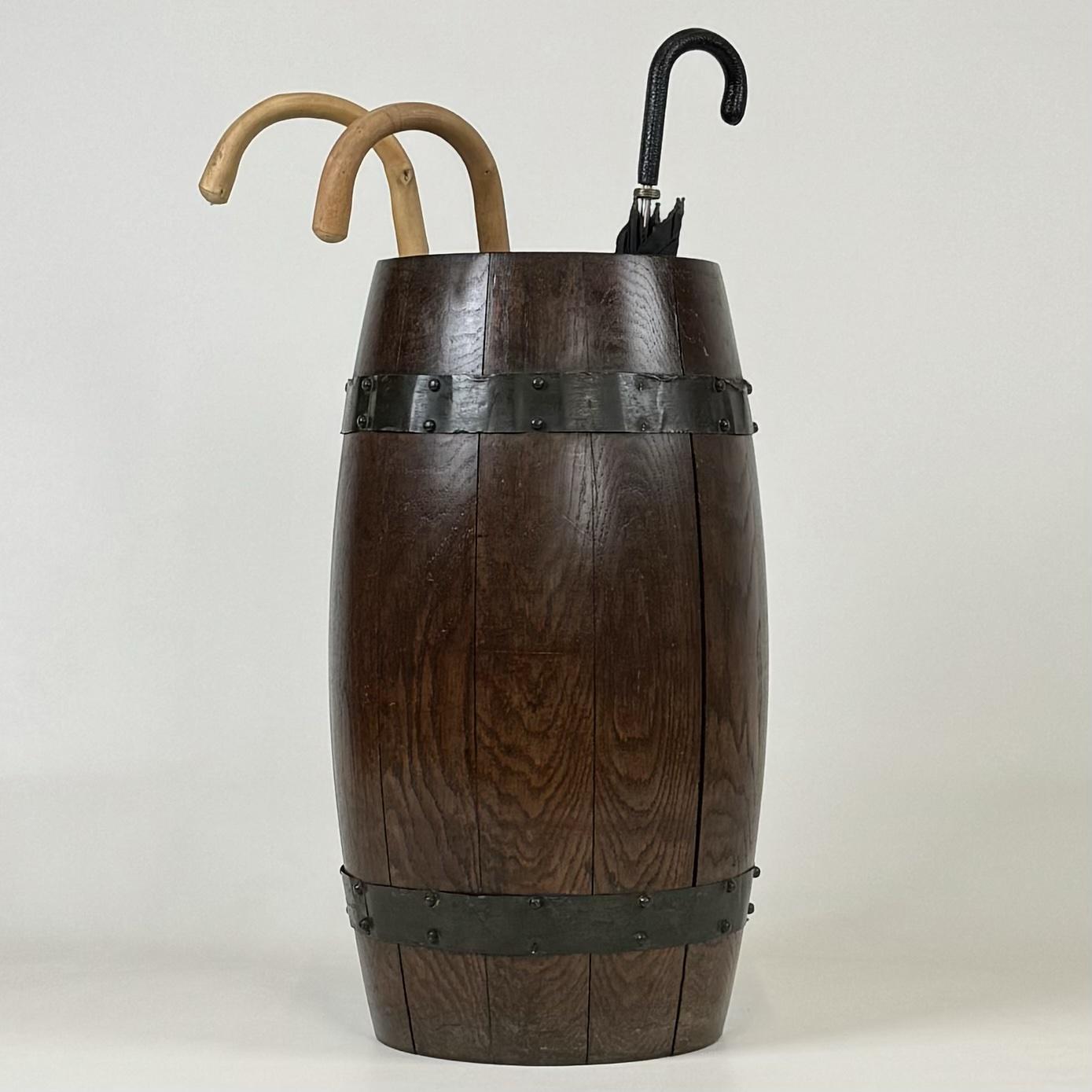 Antique 20th Century Unique Barrel Stick Stand in Oak