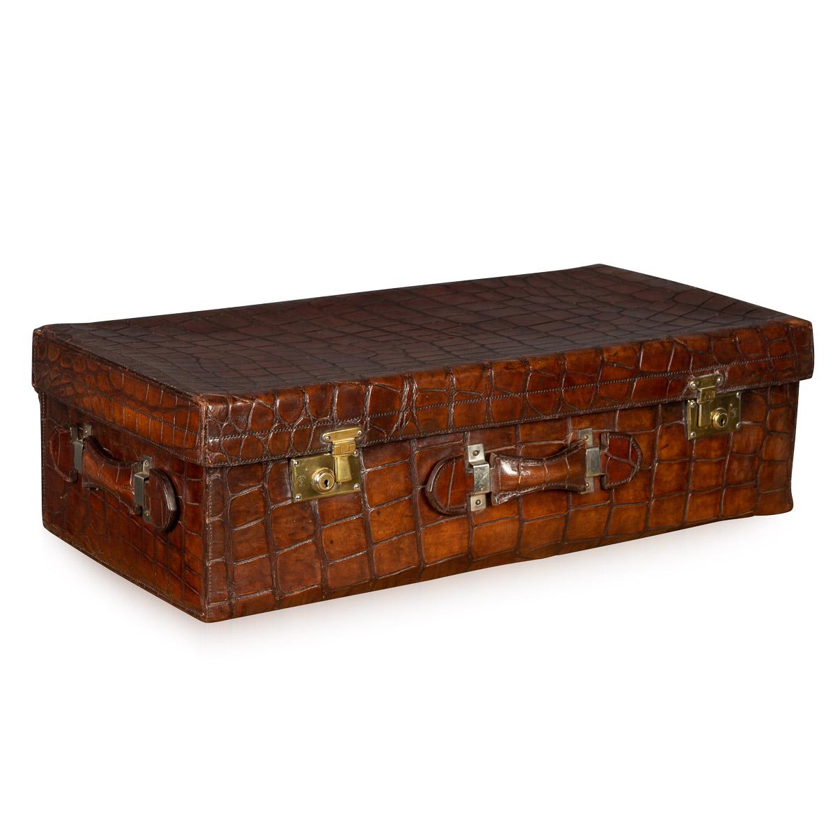 Antique 20thc English Crocodile Leather Suitcase c.1900
