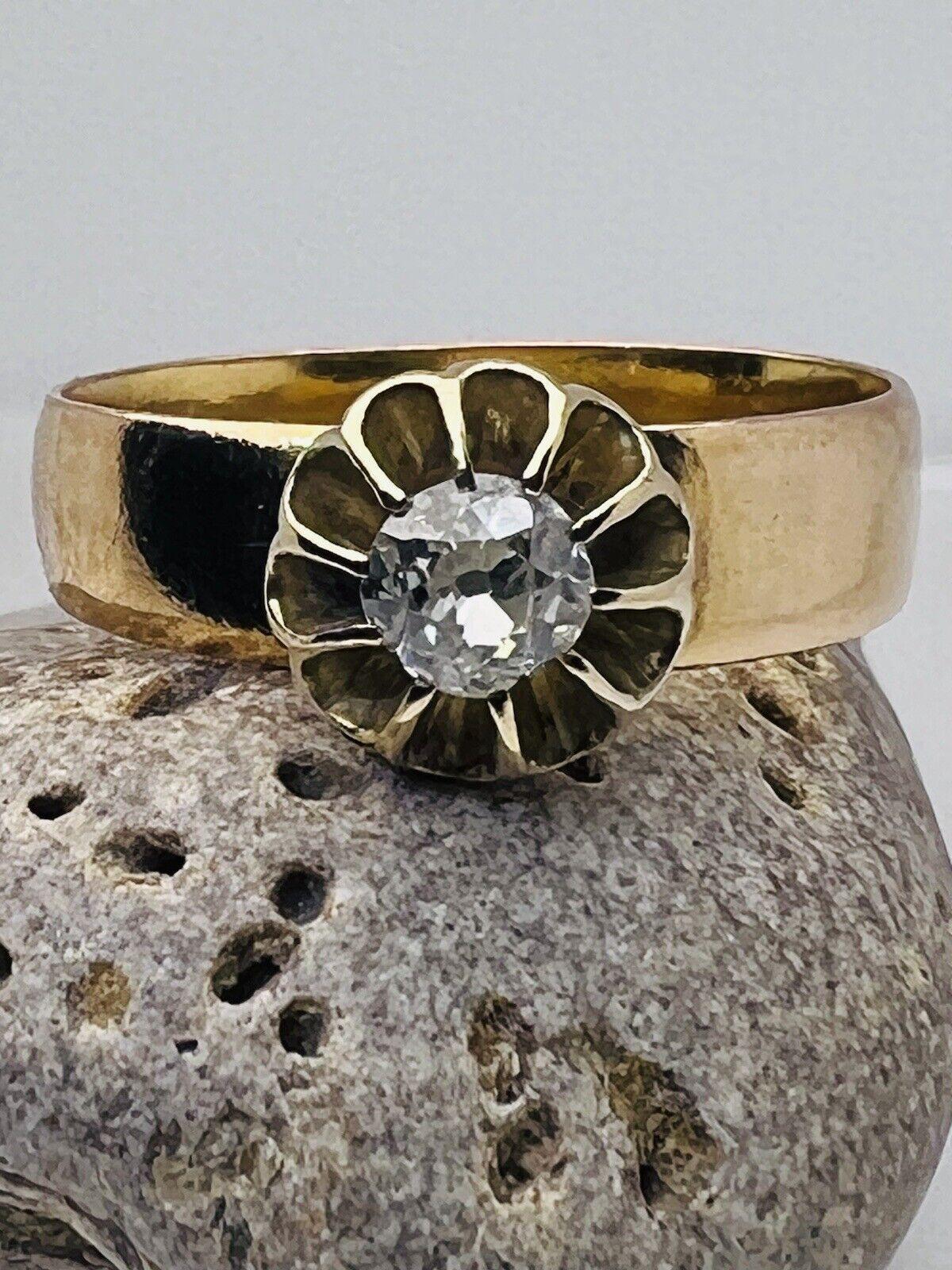 Antique 22ct Gold Wedding Band with Hand Cut Diamond
