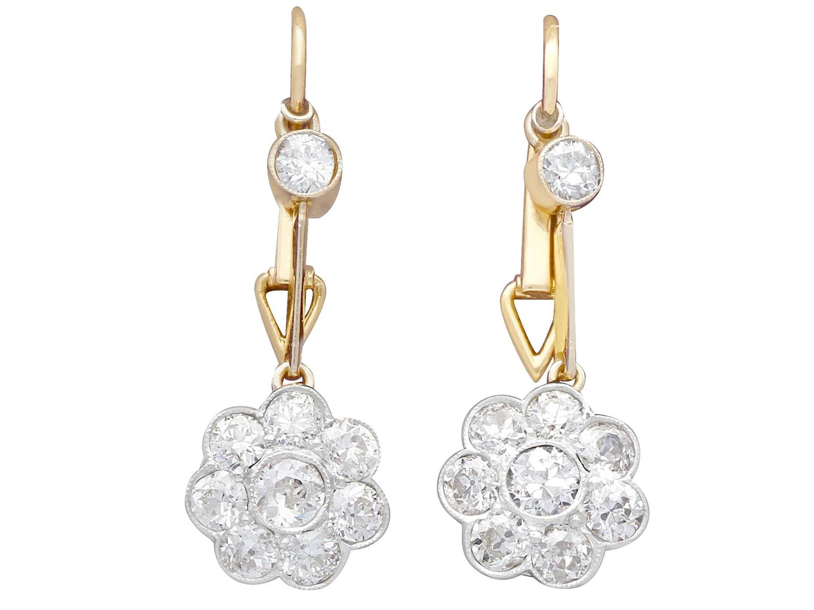 Antique 2.75ct Diamond 15ct Yellow Gold & Platinum Drop Earrings c.1910 (1 of 14)
