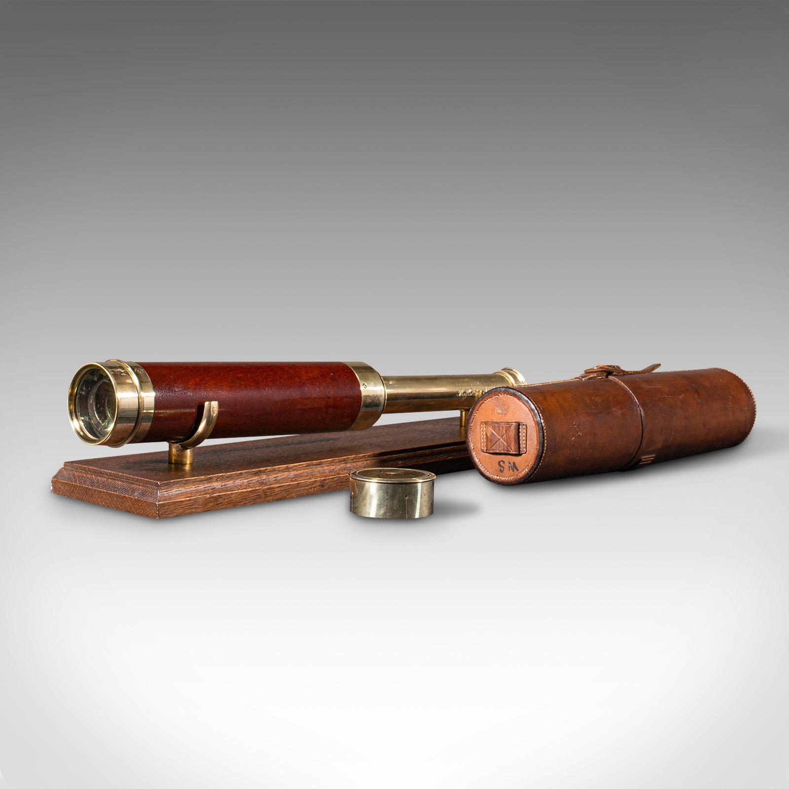 Antique 3 Draw Telescope, English Terrestrial, Leather Case, JP Cutts, Victorian (1 of 12)