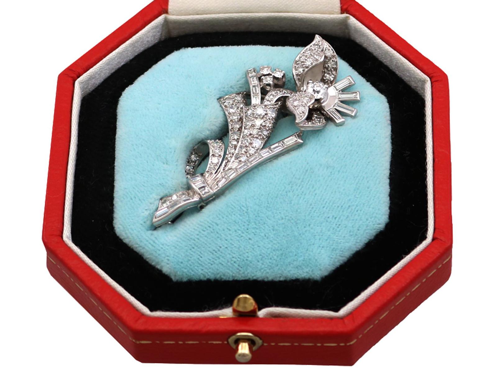 Antique 3.67ct Diamond & Platinum Floral Brooch - Art Deco c.1930 (1 of 17)