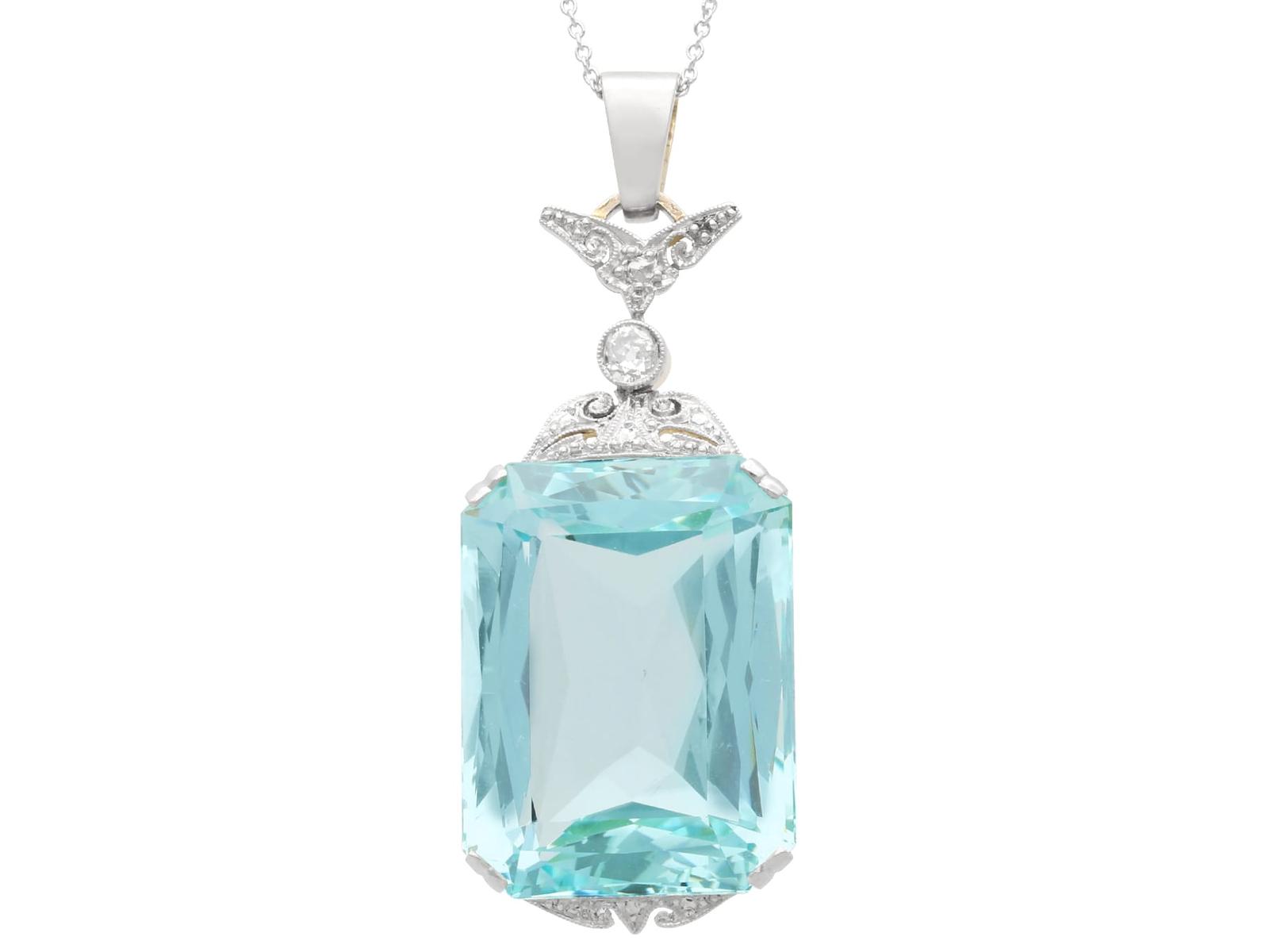 Antique 42.68ct Aquamarine and 0.16ct Diamond 12ct Yellow Gold Pendant Circa 1935 (1 of 13)