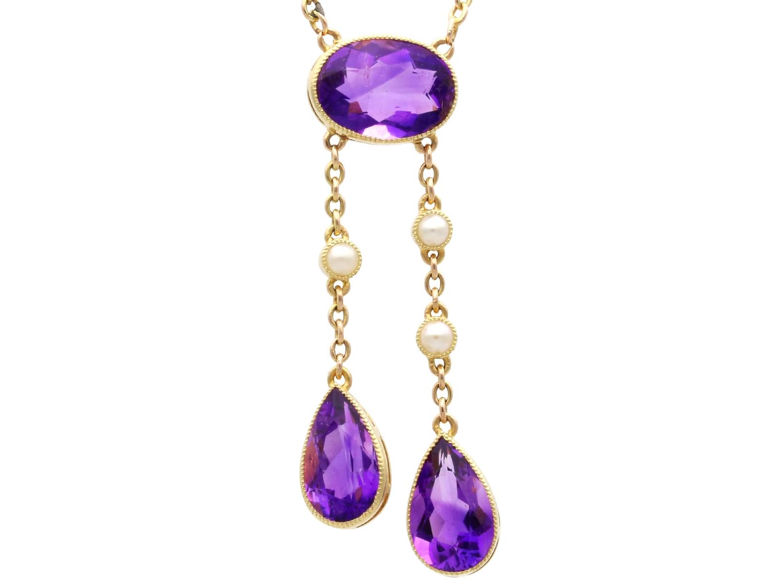 Antique 5.60ct Amethyst and Pearl, 15ct Yellow Gold Pendant Circa 1900 (1 of 13)
