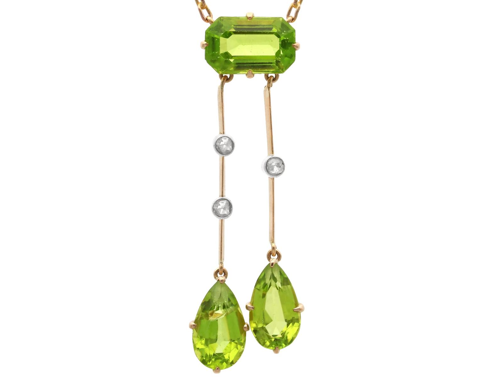 Antique 6.80ct Peridot & 0.12ct Diamond, 15ct Yellow Gold Pendant c.1900