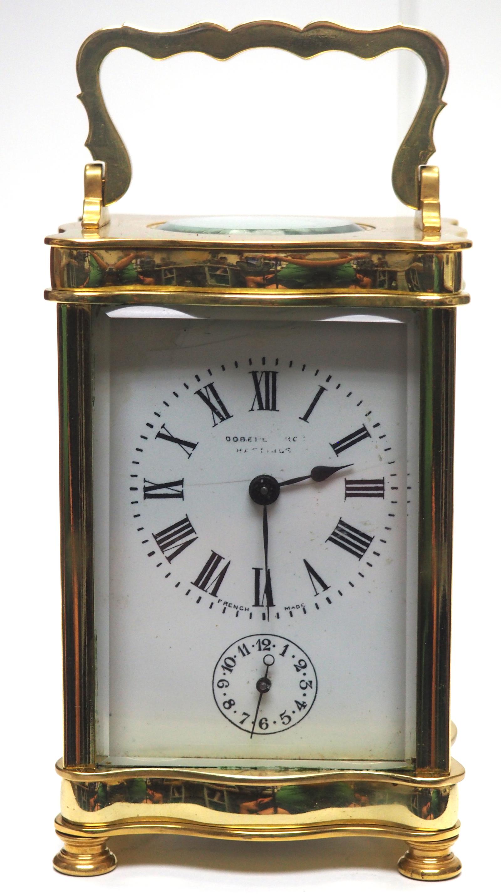Antique 8 Day French Carriage Clock Interesting Serpentine Case Enamel Dial c.1890