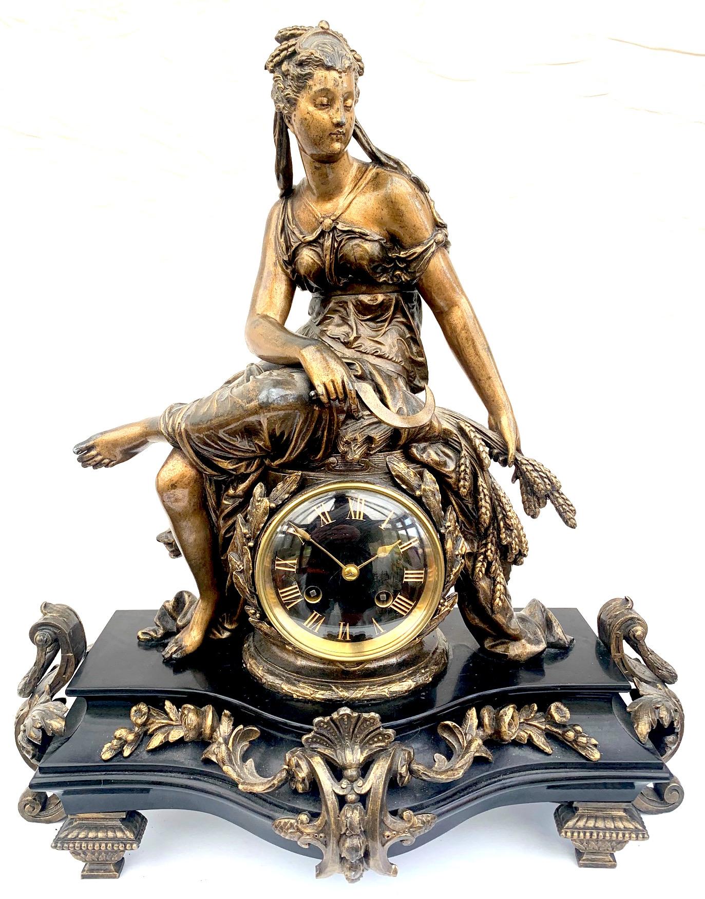Antique 8-day French Figural Striking Slate Mantle Clock