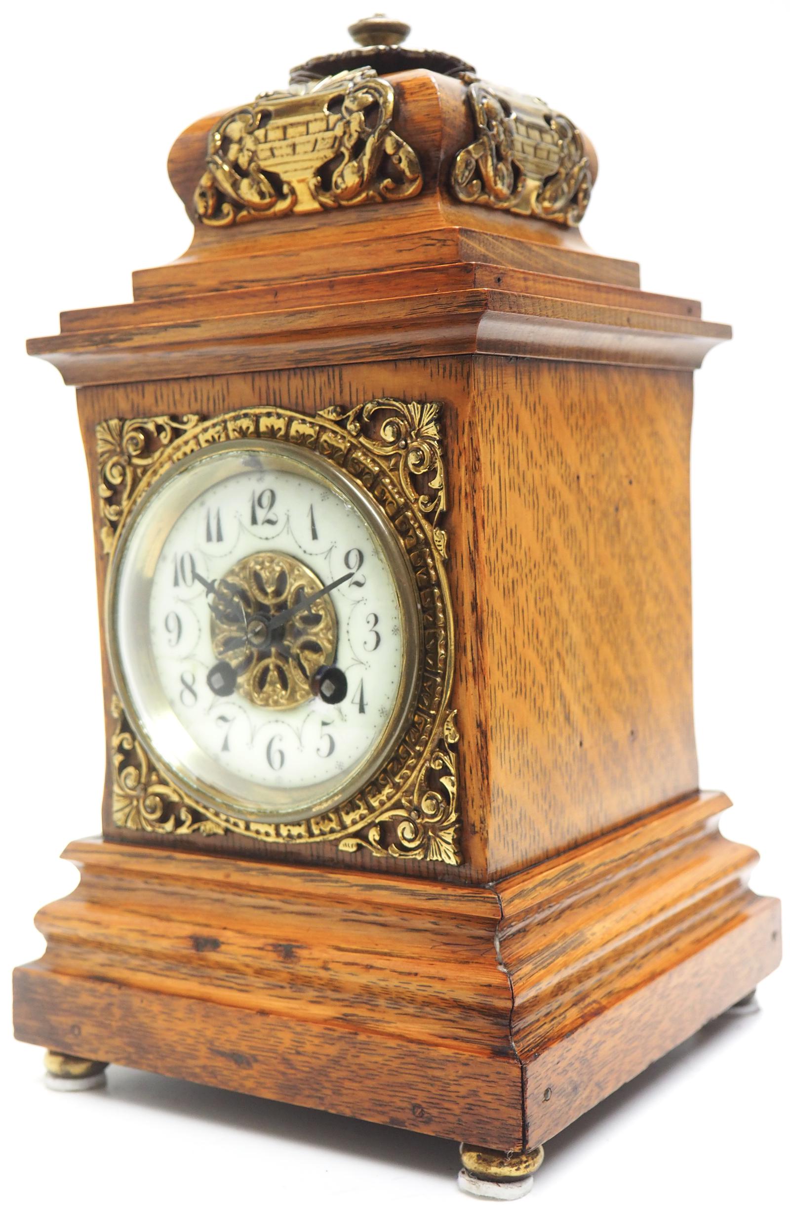 Antique 8 Day Oak cubed Mantel Clock Honey Oak Cased Striking Mantle Clock (1 of 5)